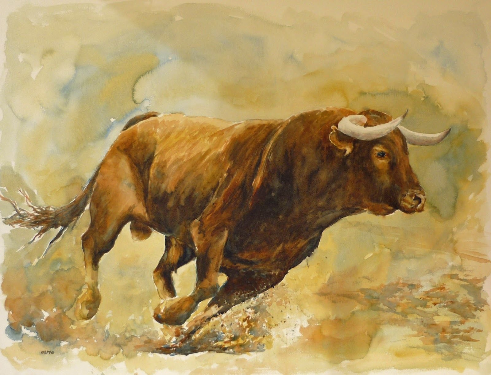 Бык акварель