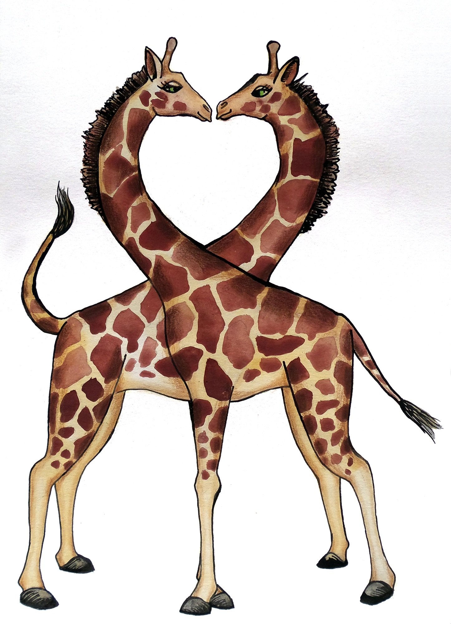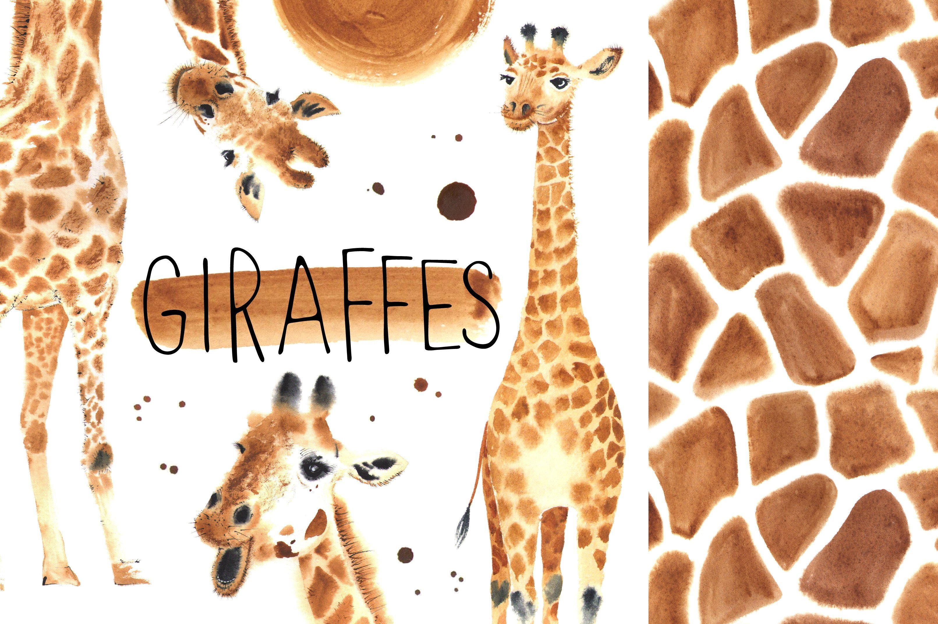 Жирафы акварелью