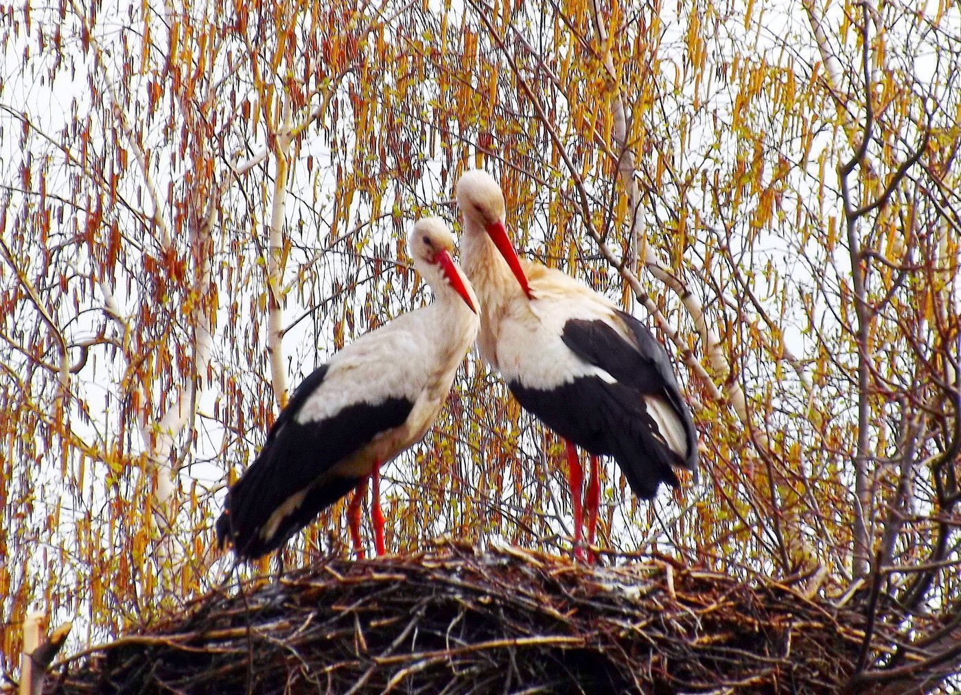 Пара аистов в гнезде