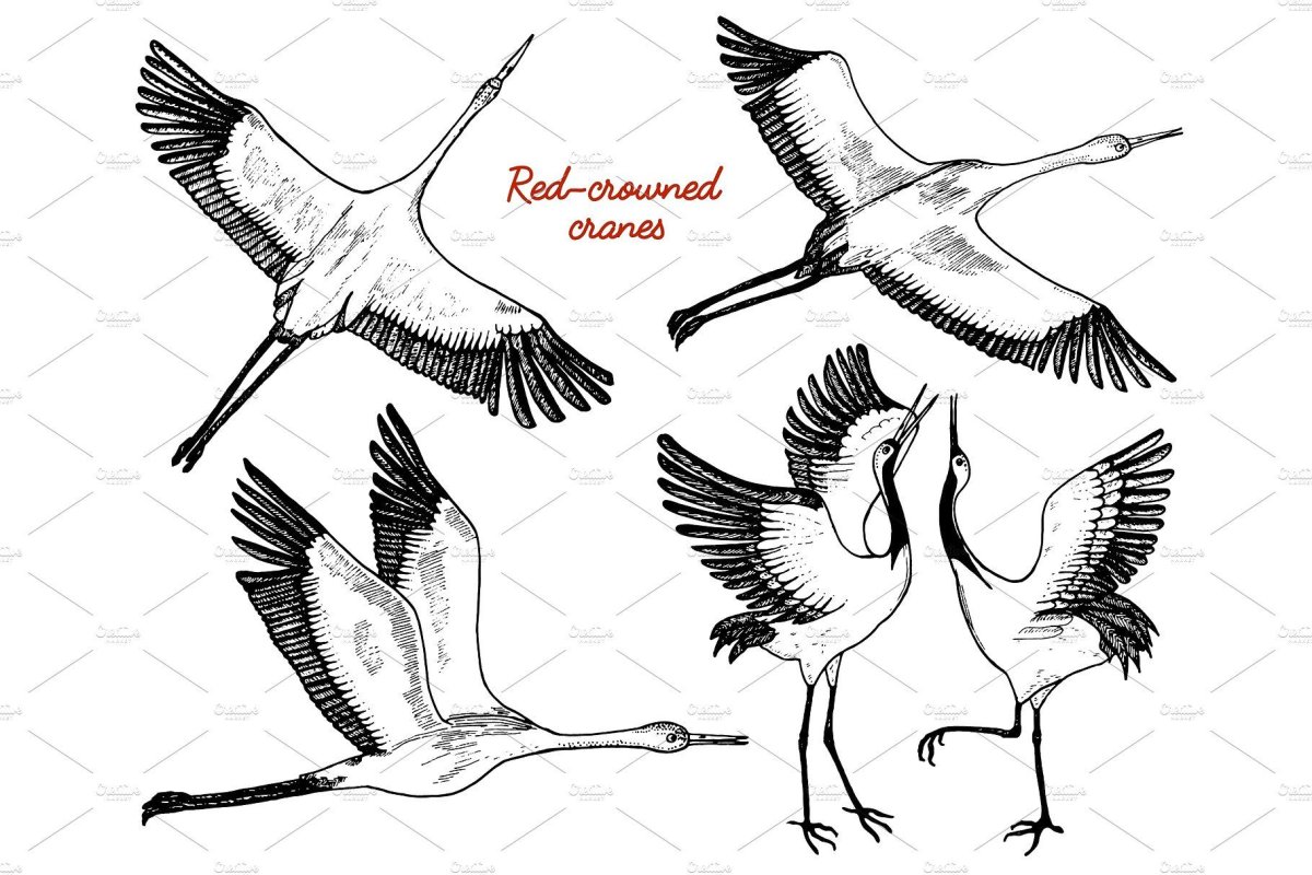 Журавль в полете рисунок
