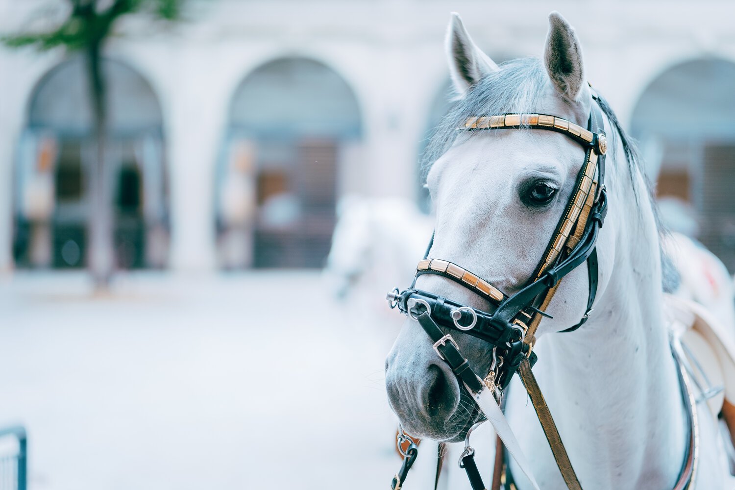 Белая лошадь с серой гривой