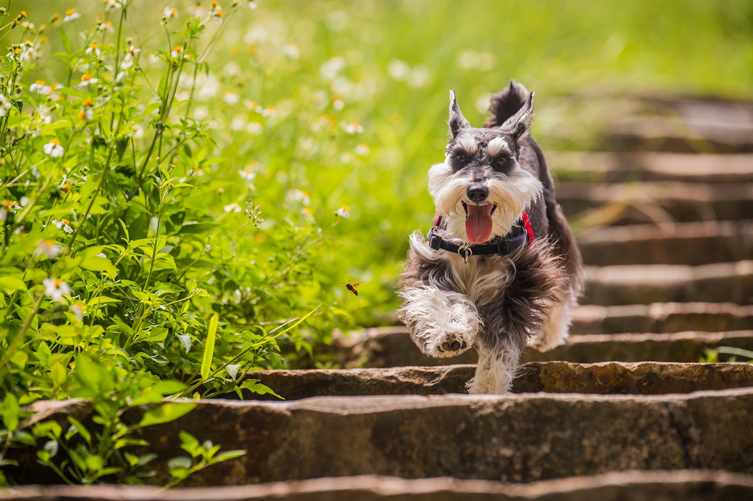 Цвергшнауцер на прогулке