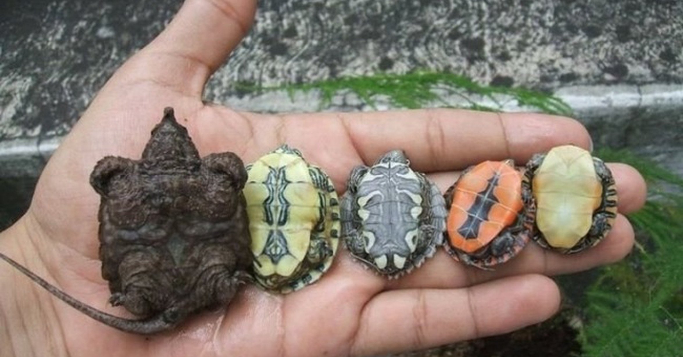 Новорожденная черепашка красноухая