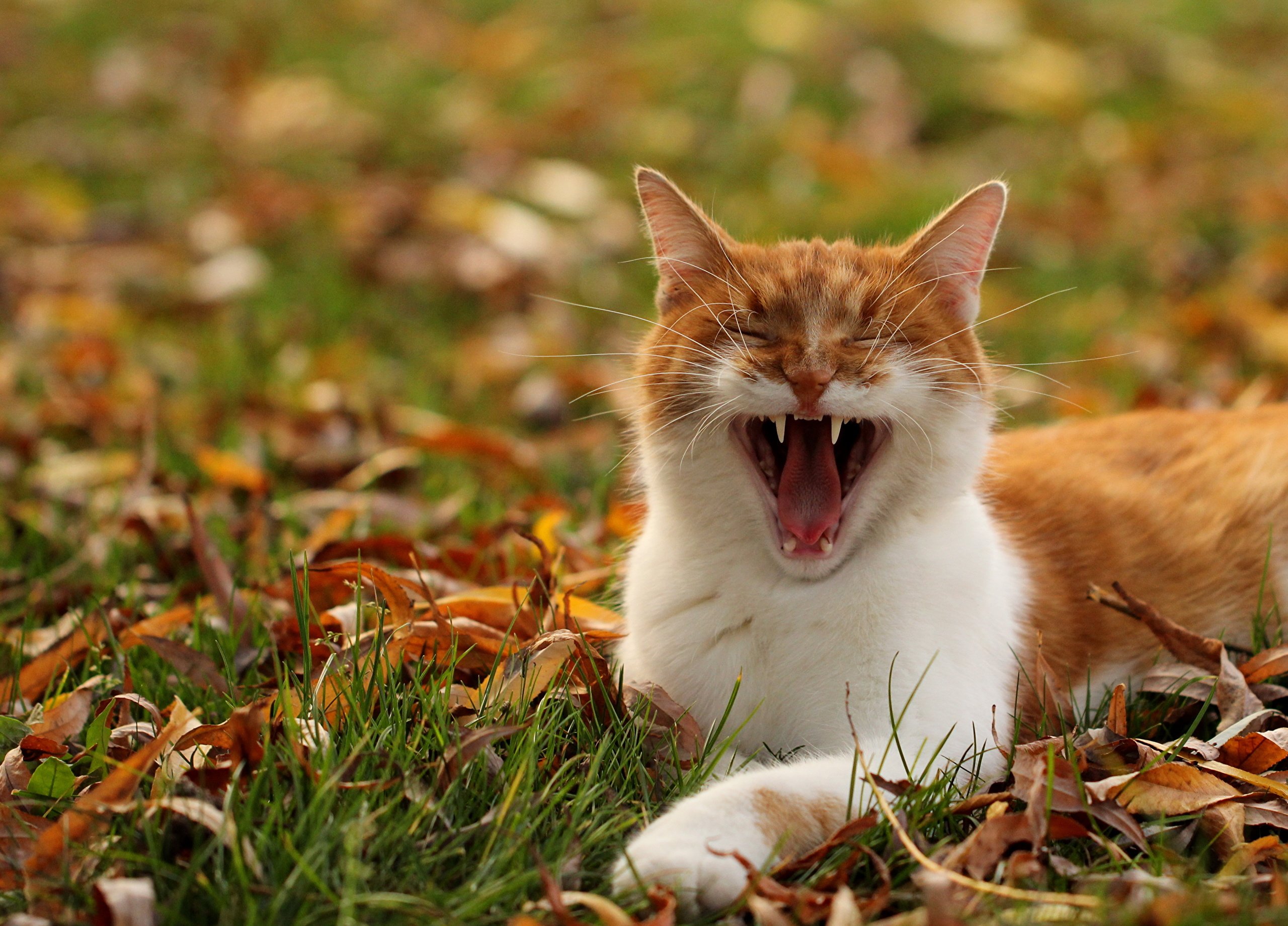 Кот в осенних листьях