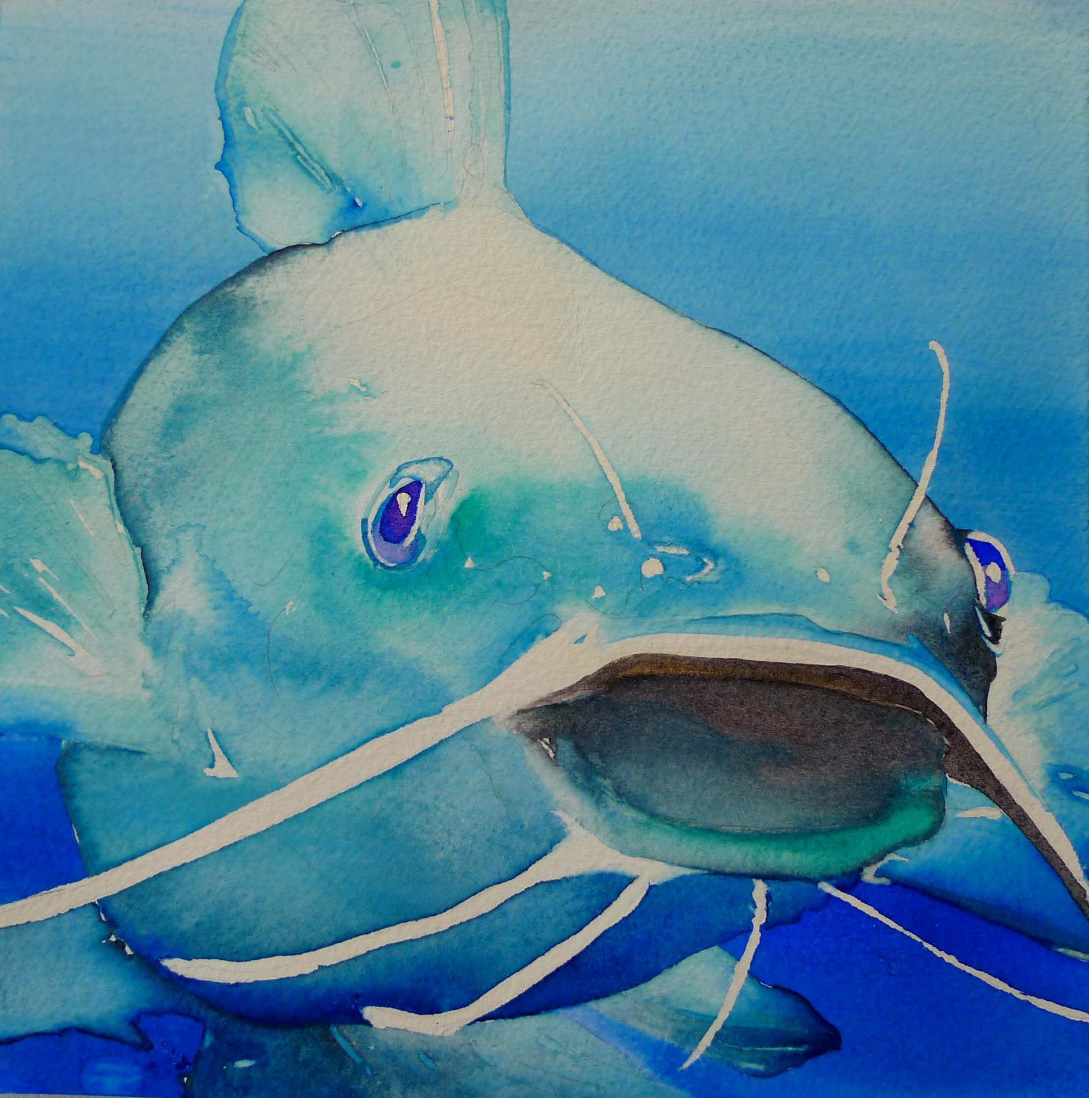 Синяя рыба акварель картина