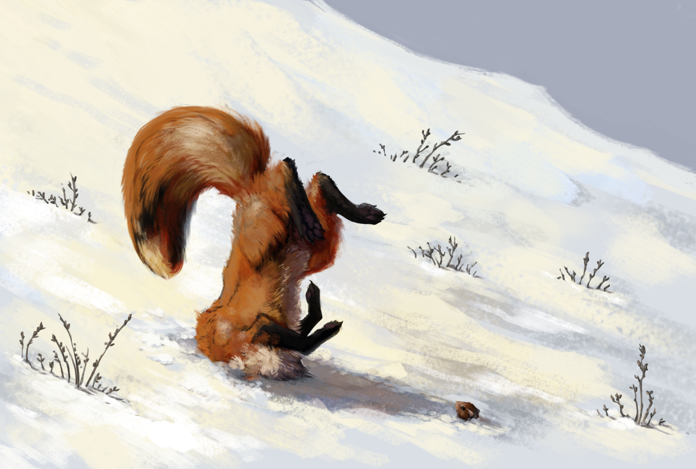 Лиса зимой арт