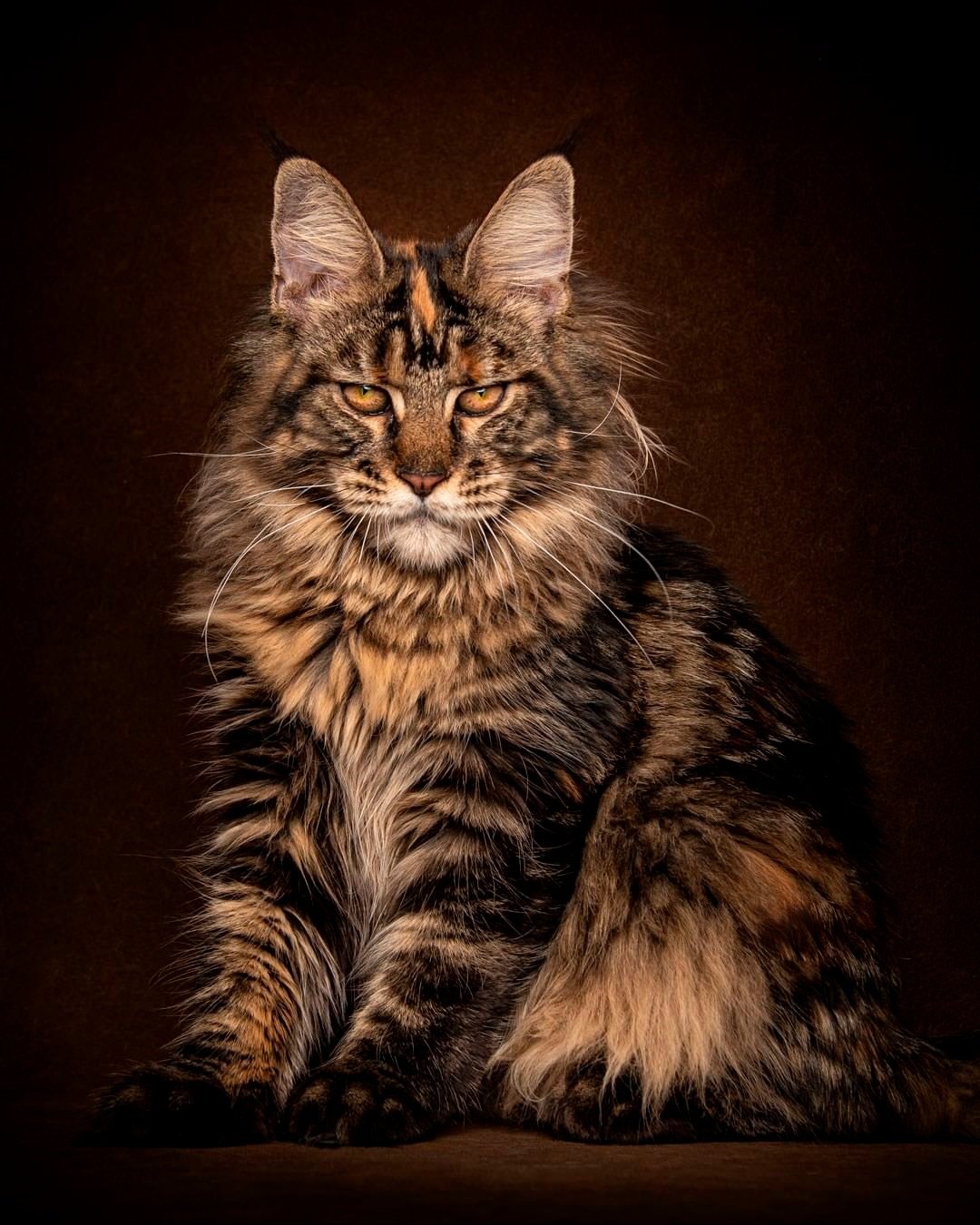 Трёхцветный мейнкун кошка