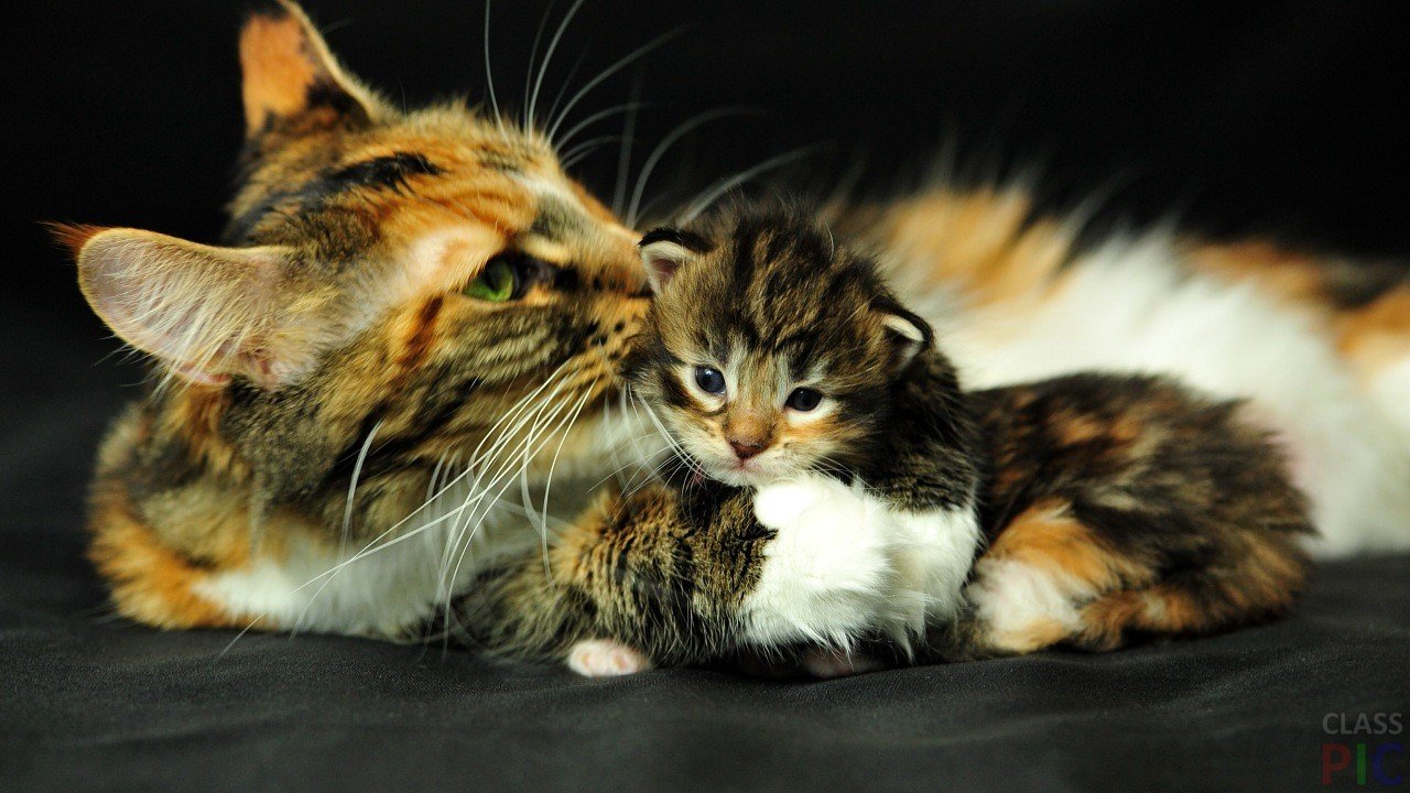 Трехцветная кошка с котятами