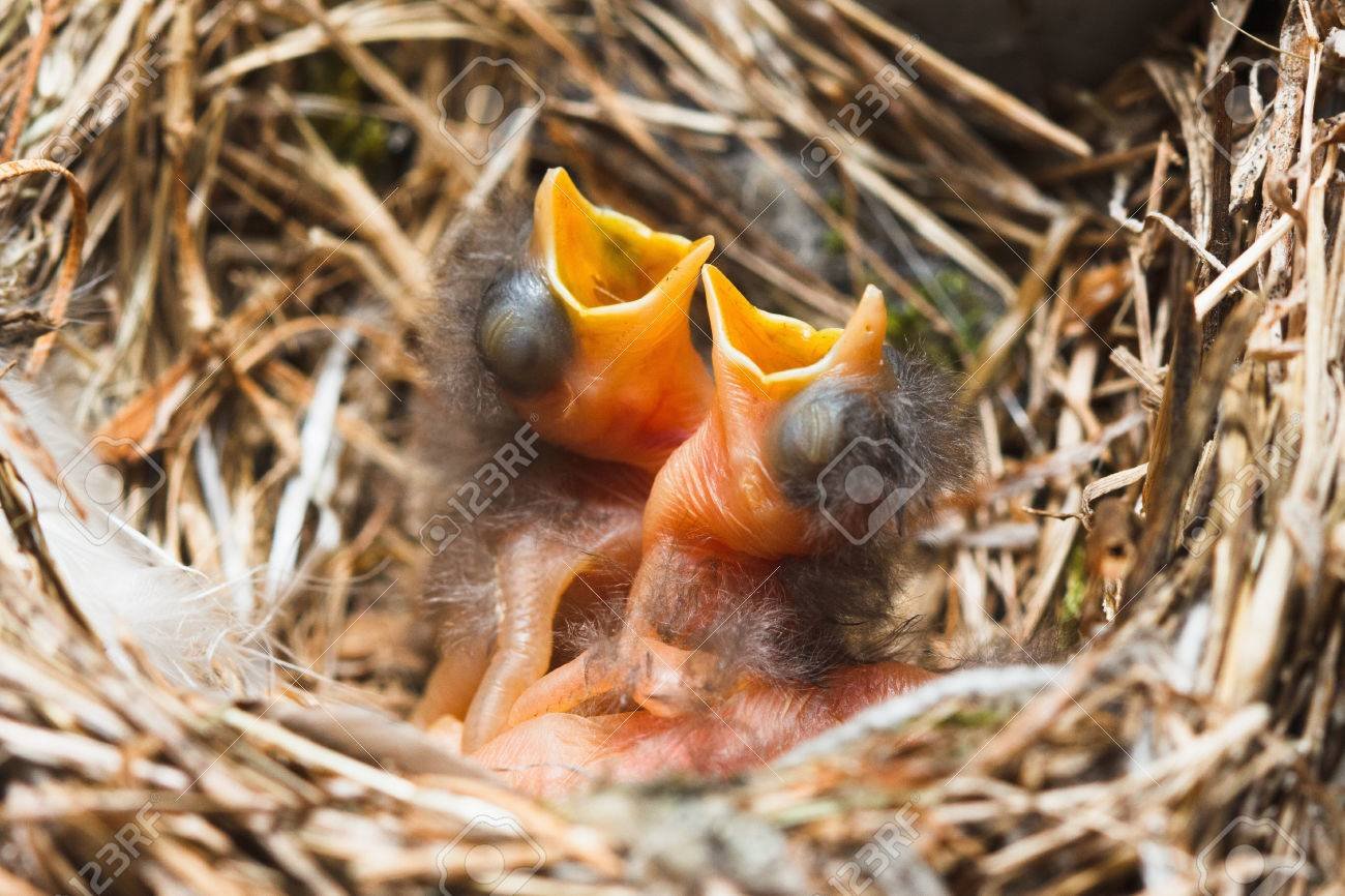 Голодные птенцы в гнезде