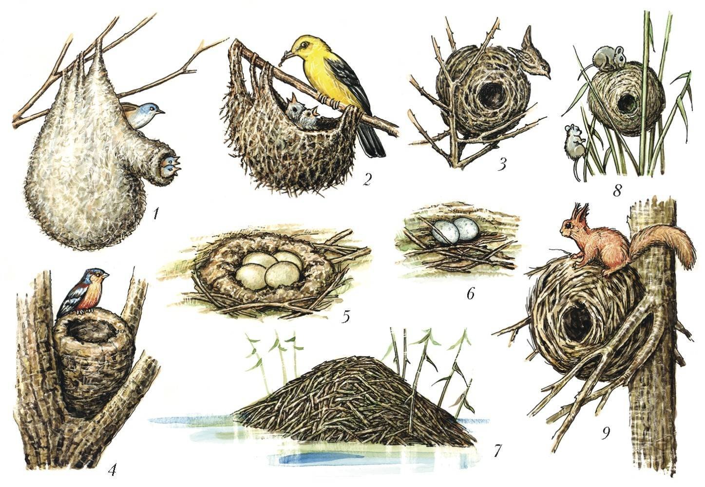 Гнёзда выводковых птиц
