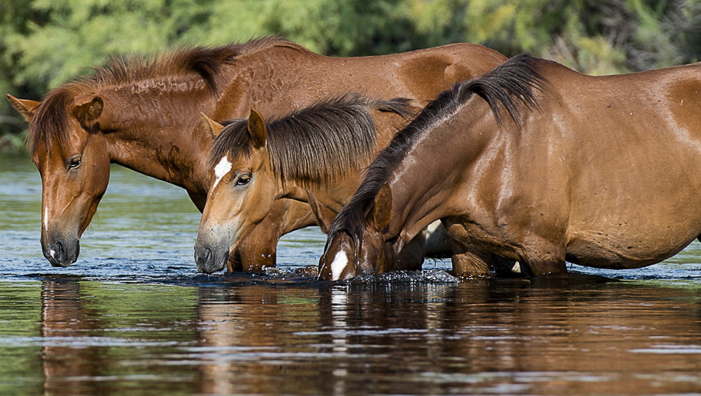 Вороные лошади в воде