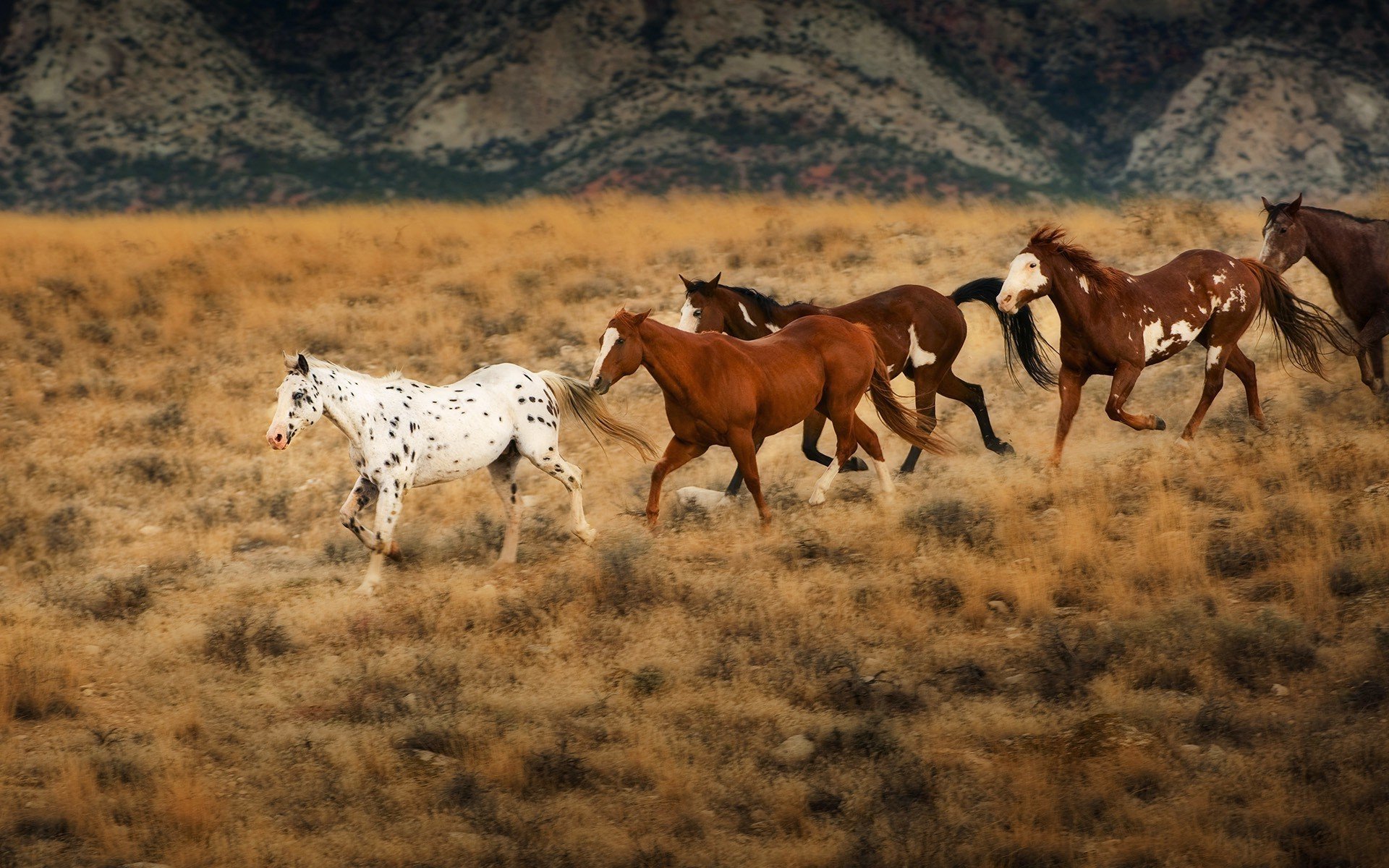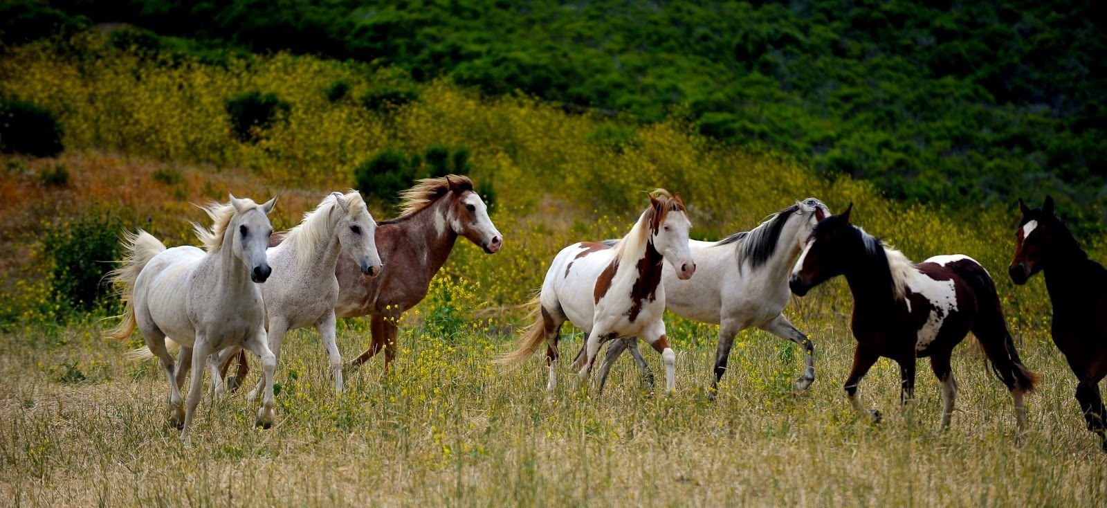 Дикие лошади бегут