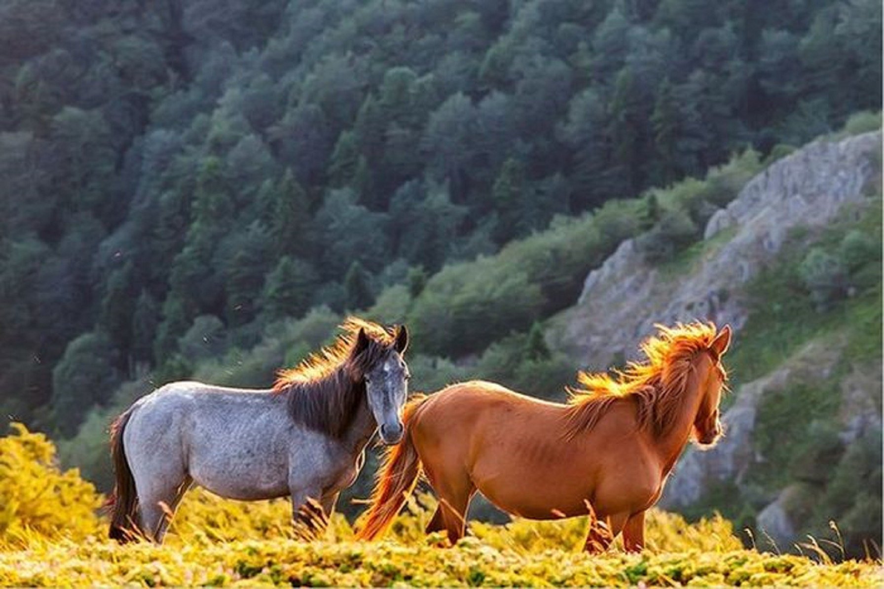 Дикие лошади в горах