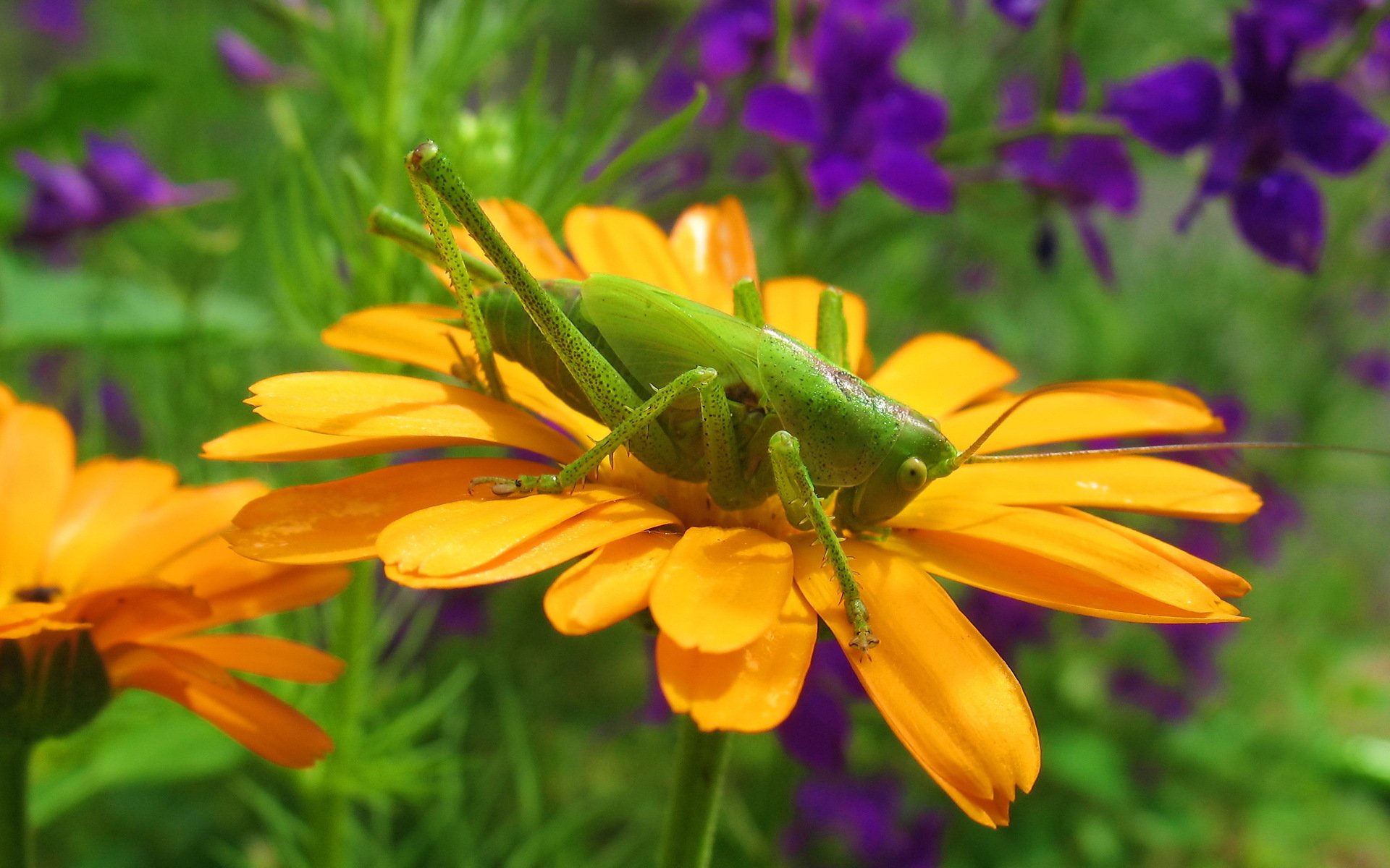 Кузнечик на цветах