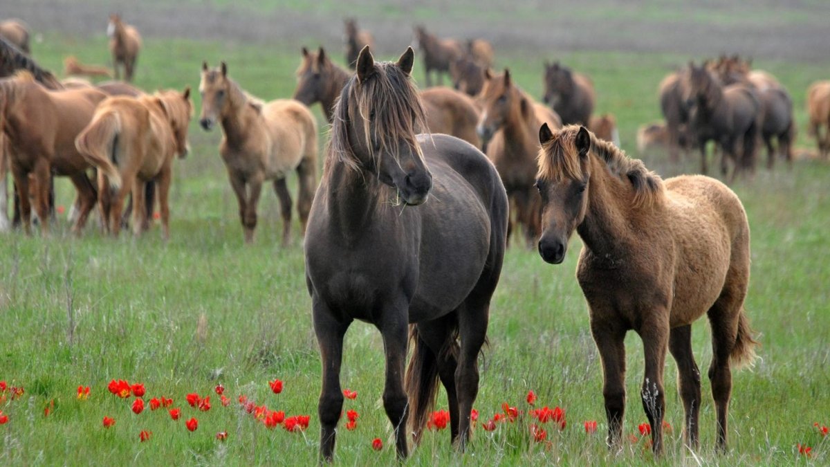 Озеро Маныч-Гудило Мустанги