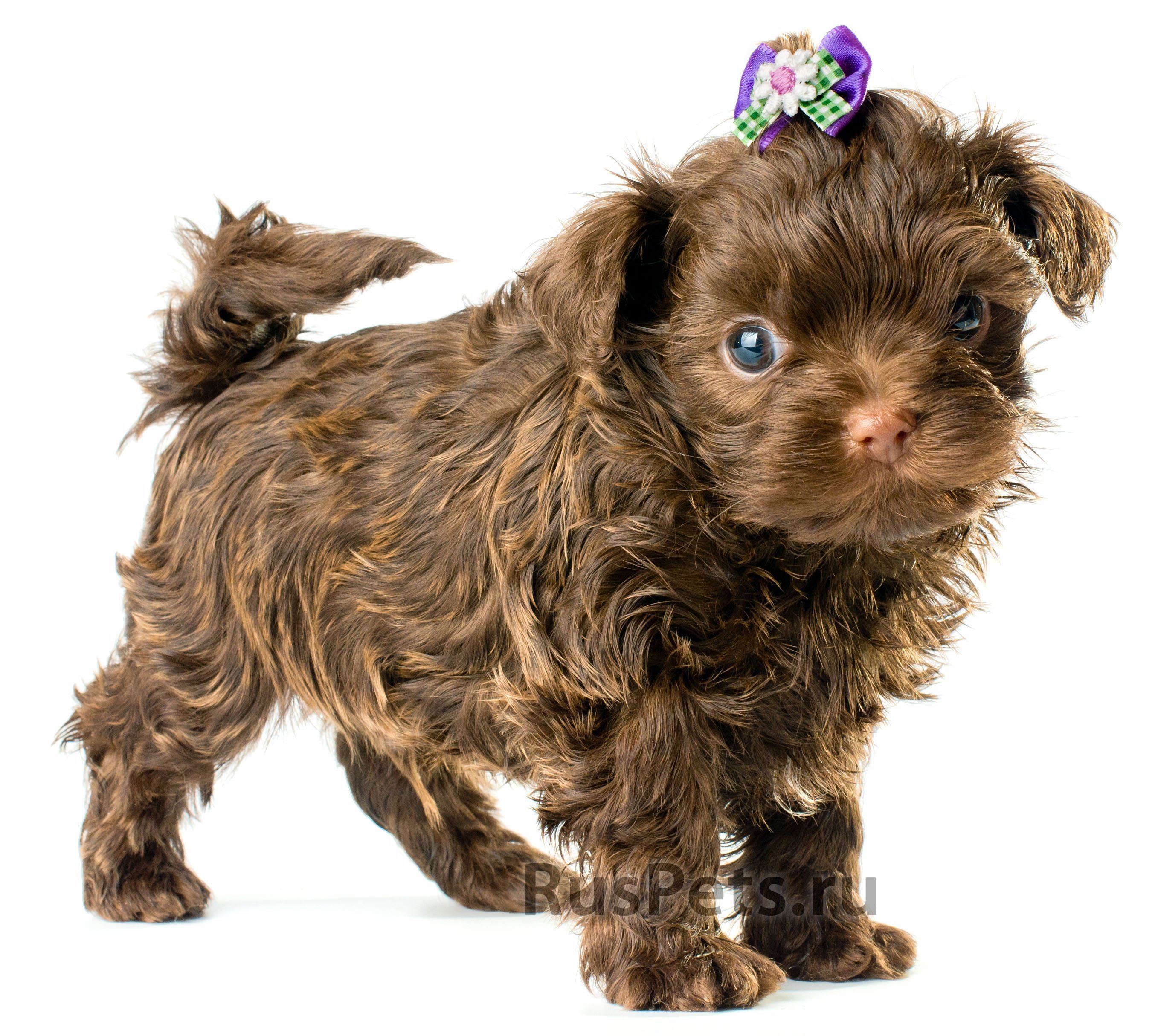 Русская цветная болонка белая с коричневым