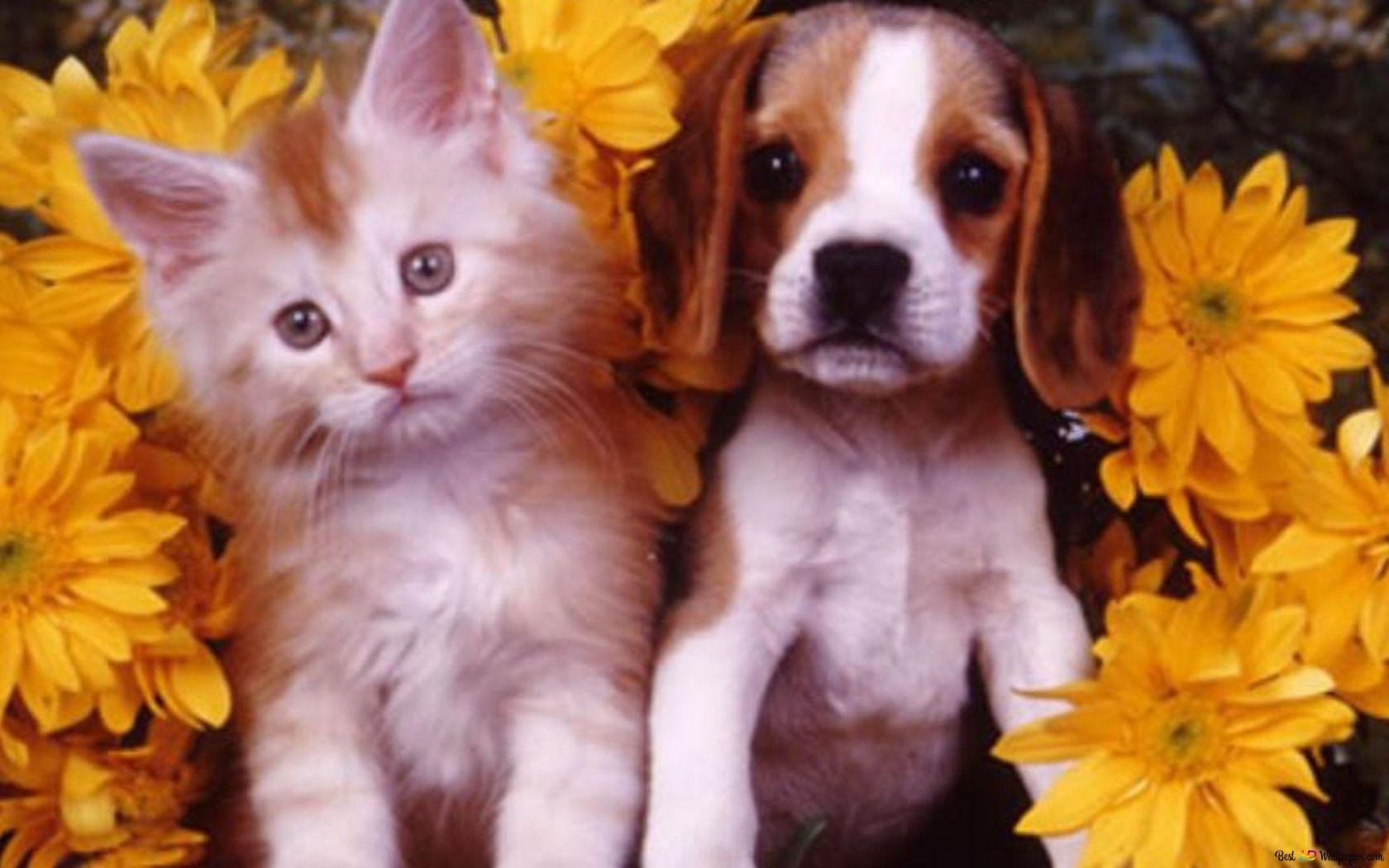Обои с котятами и собаками
