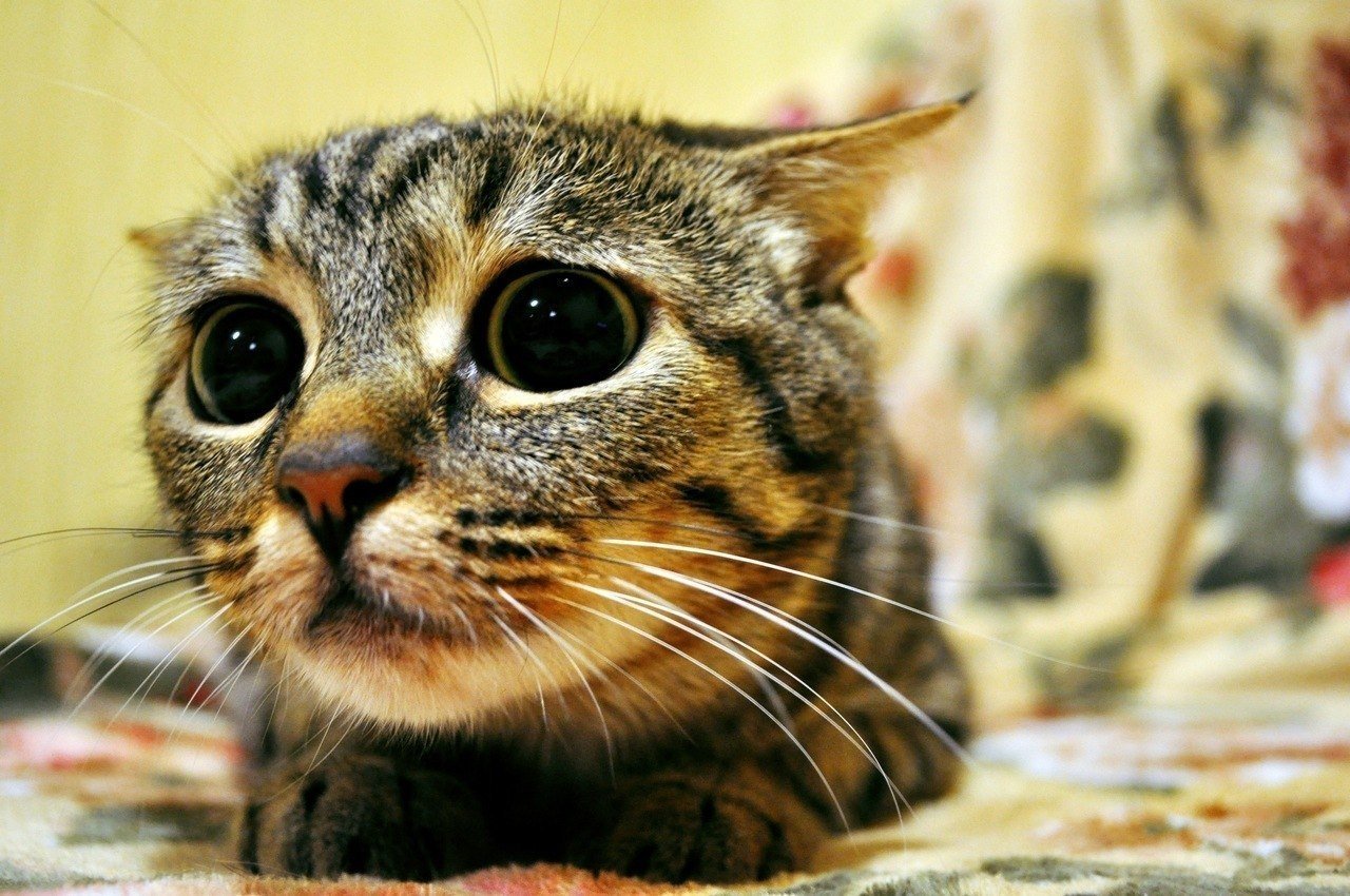 Серый кот с большими глазами