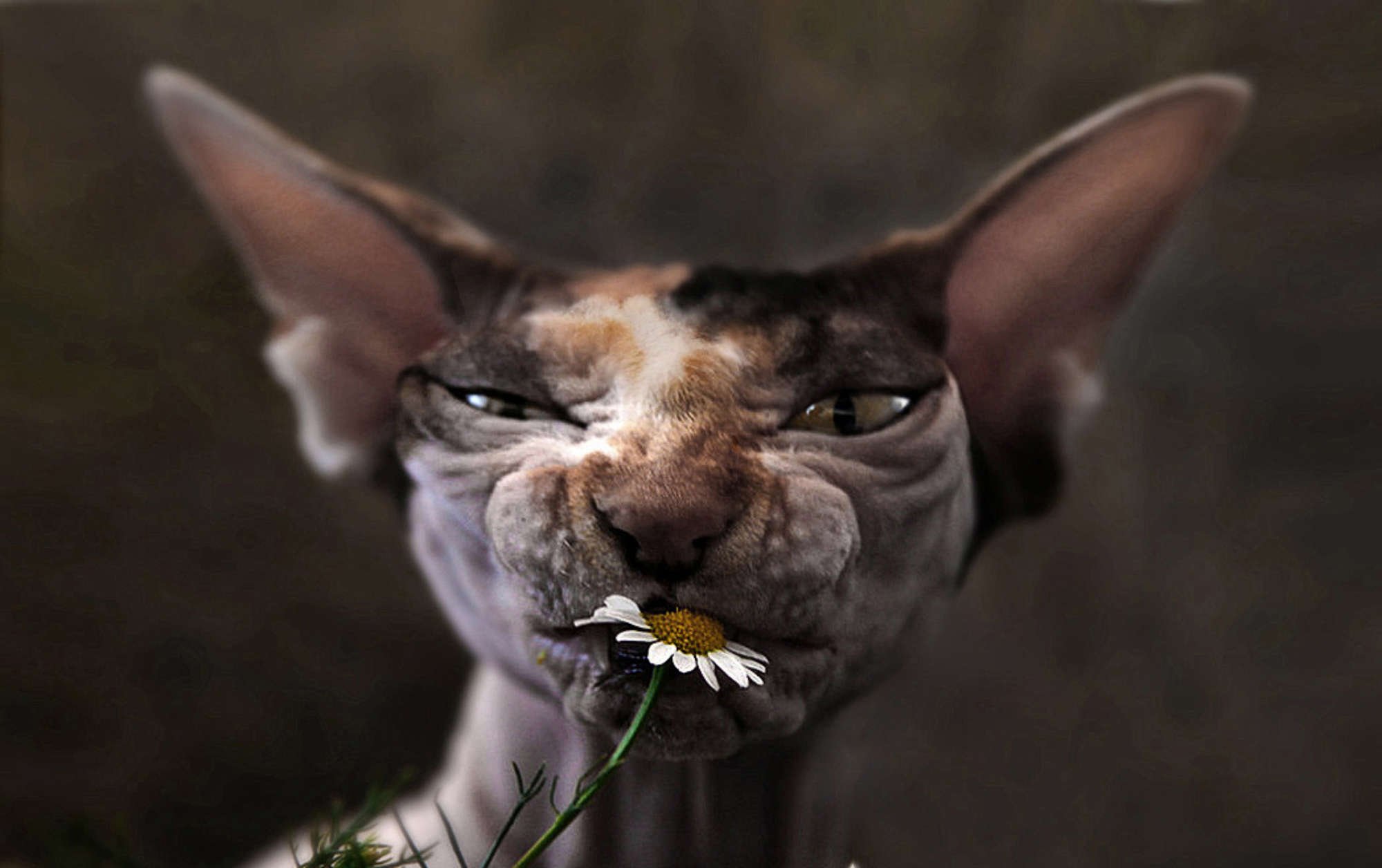 Канадский сфинкс с цветами