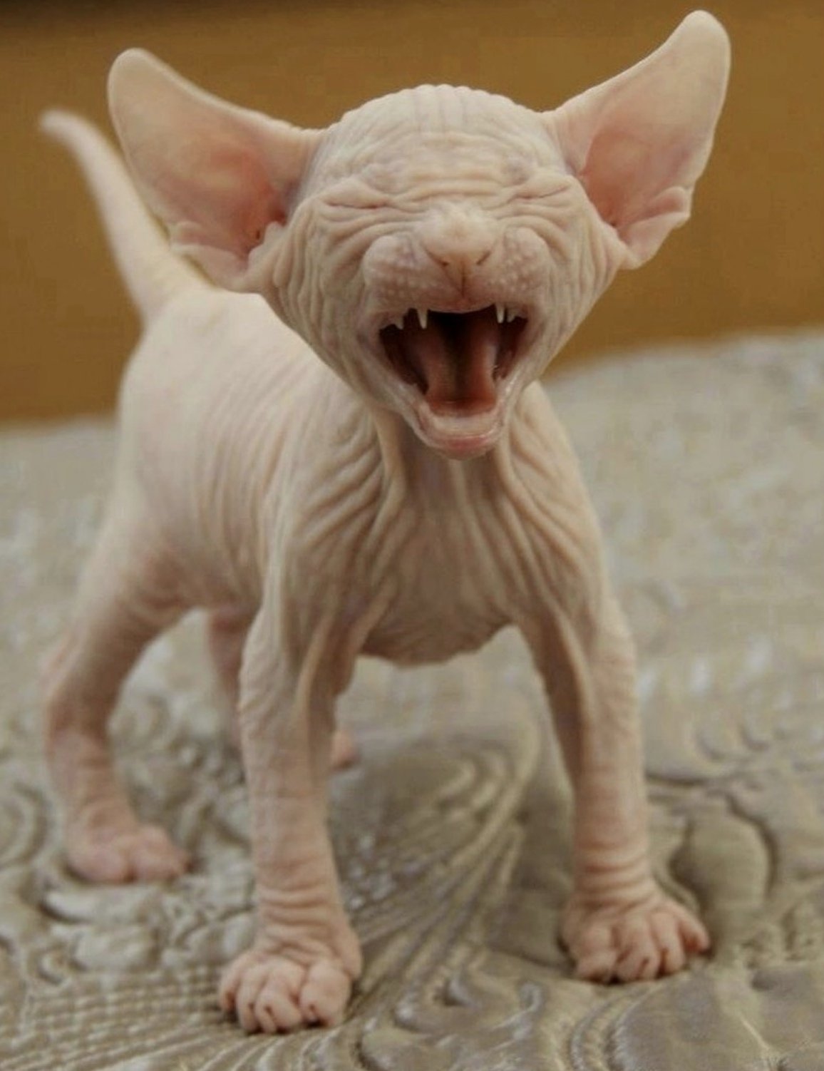 Страшный лысый кот с яйцами