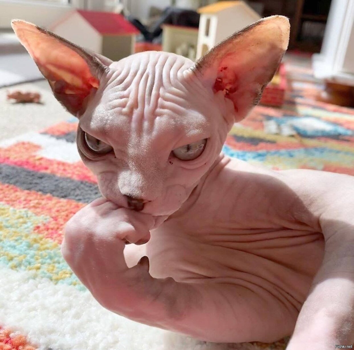 Лысая кошка смешная