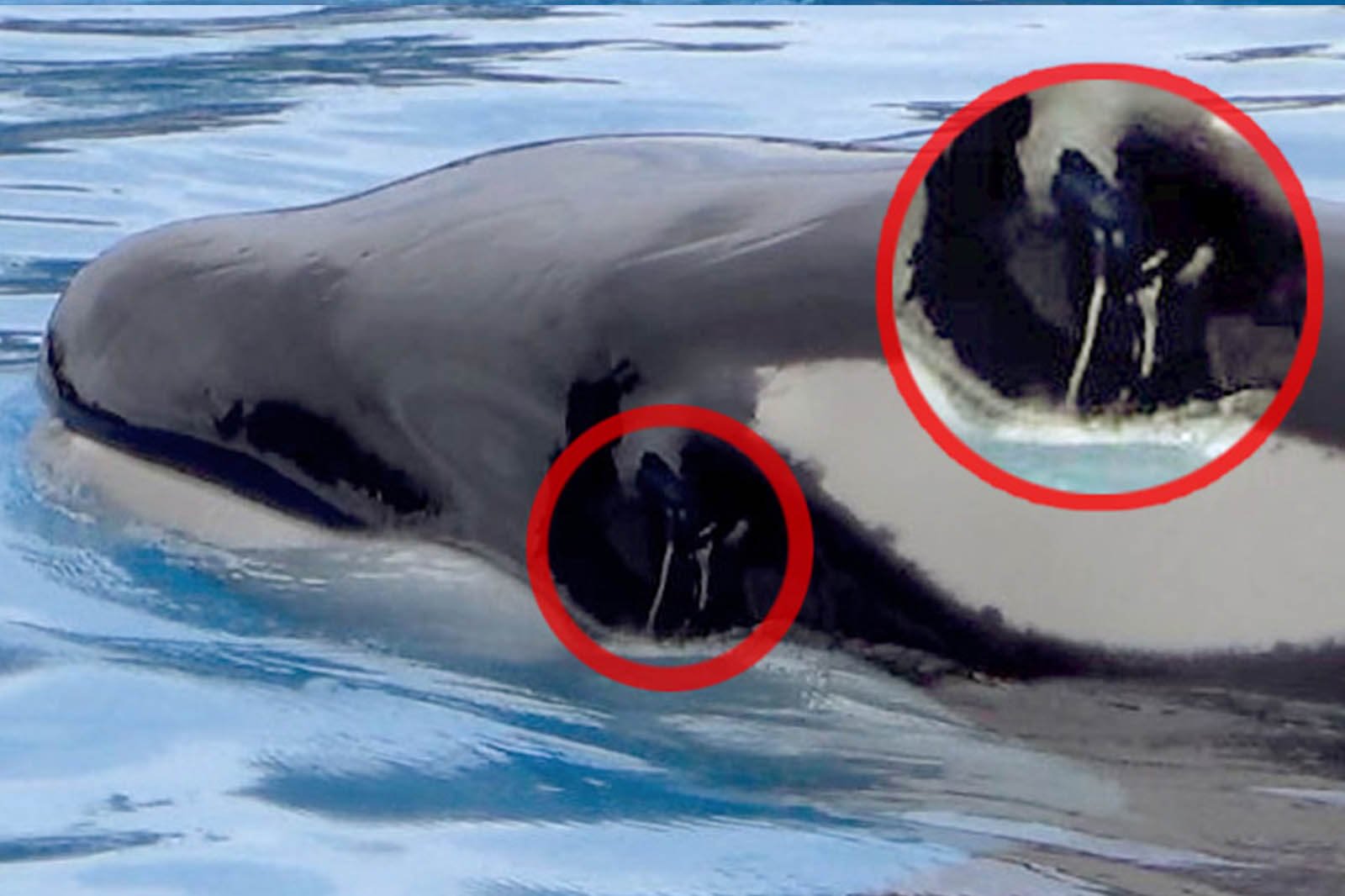 Касатка кормит детеныша молоком