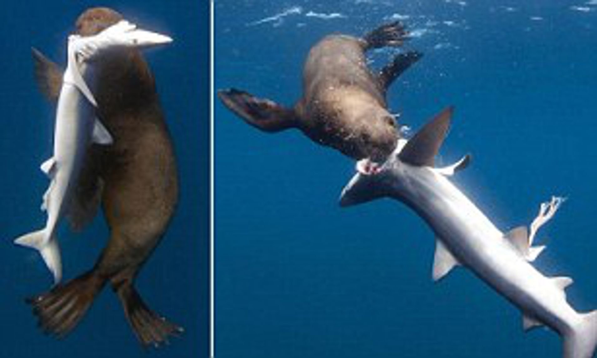Акула ест морского котика