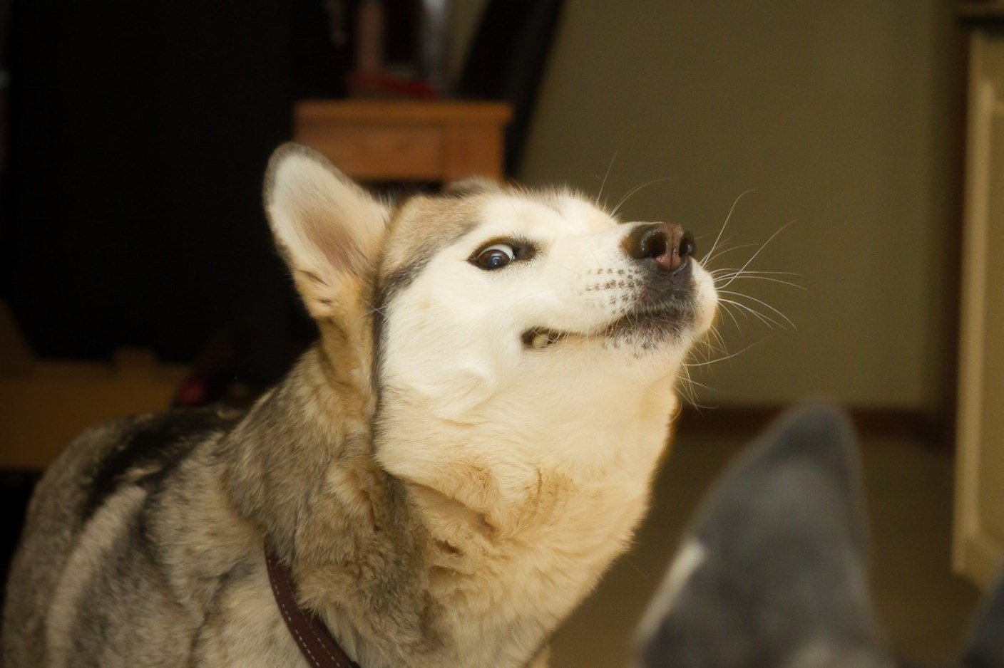 Видео где хаски шепчет на ухо человеку