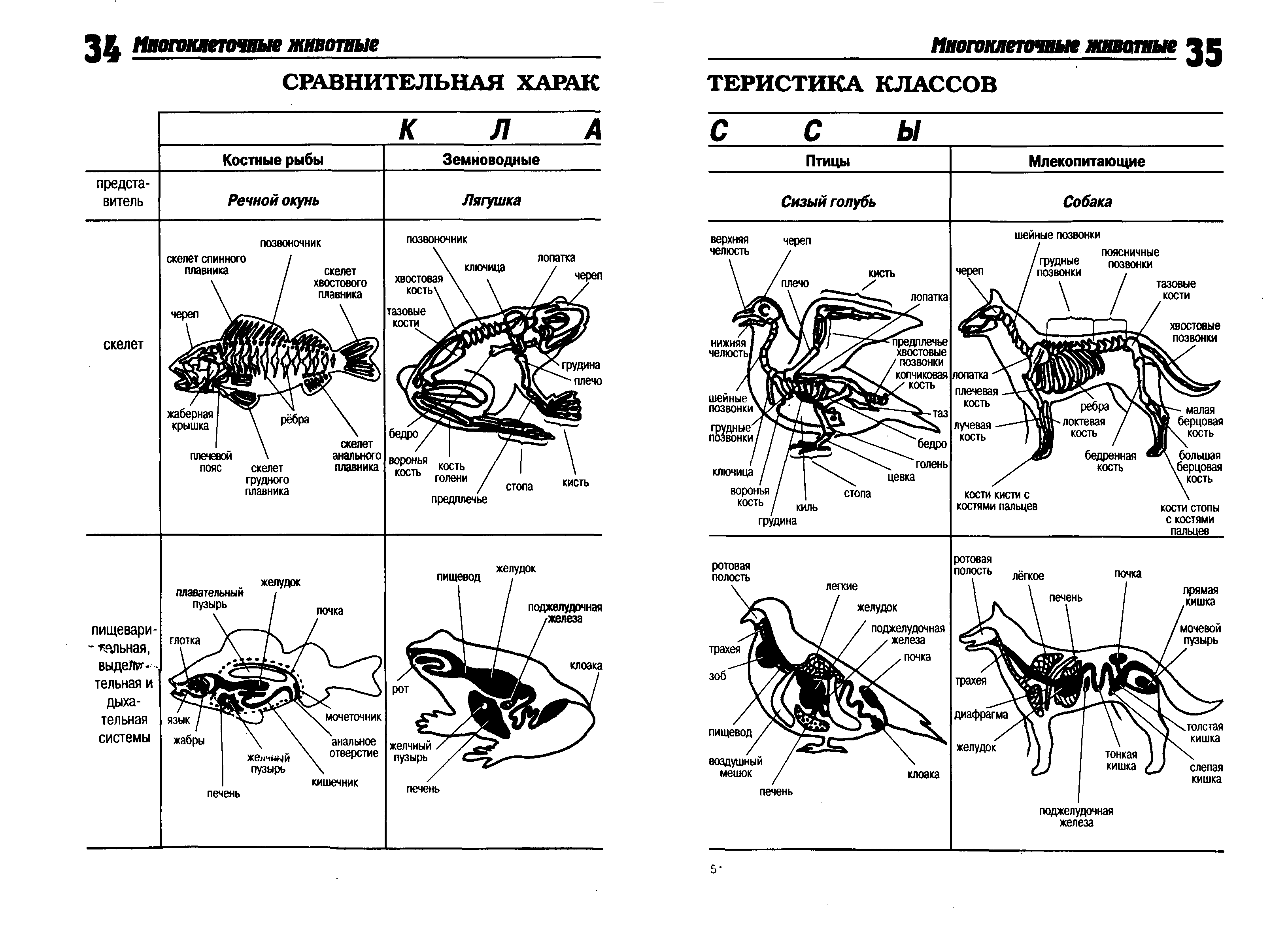 Таблица сравнение скелета костных рыб и земноводных
