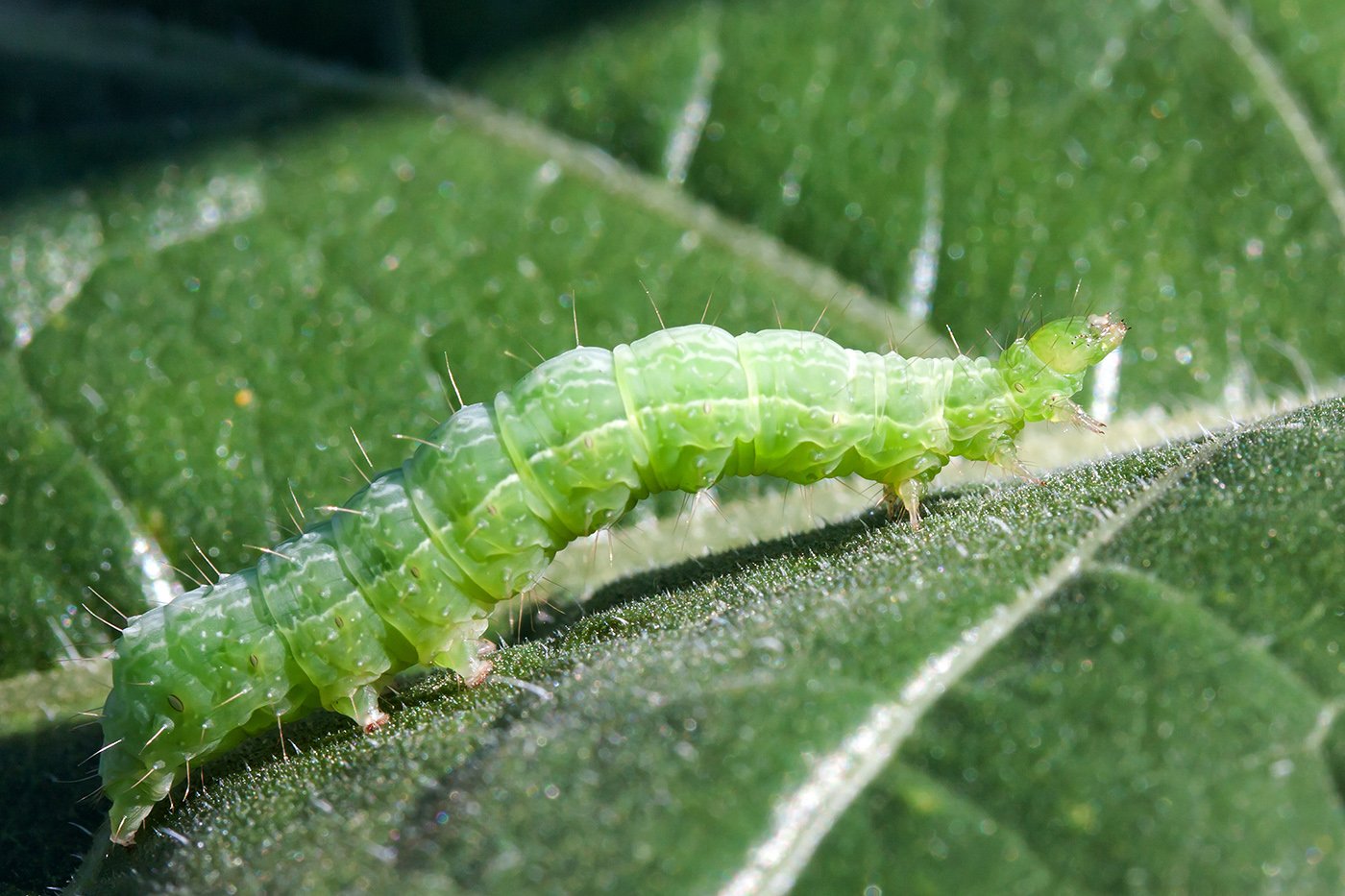 Шелкопряд зеленый гусеница