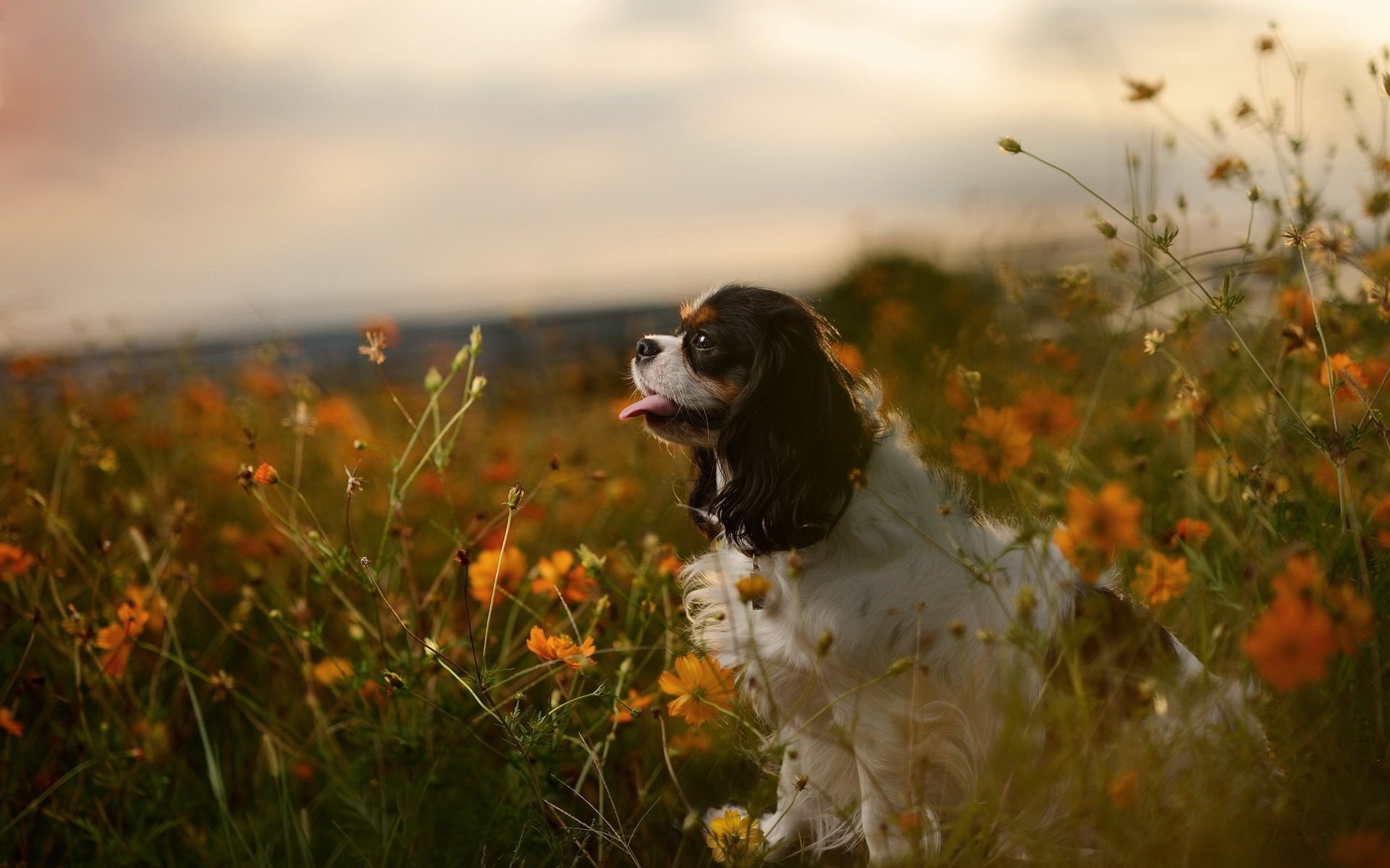 Кокер спаниель цветы
