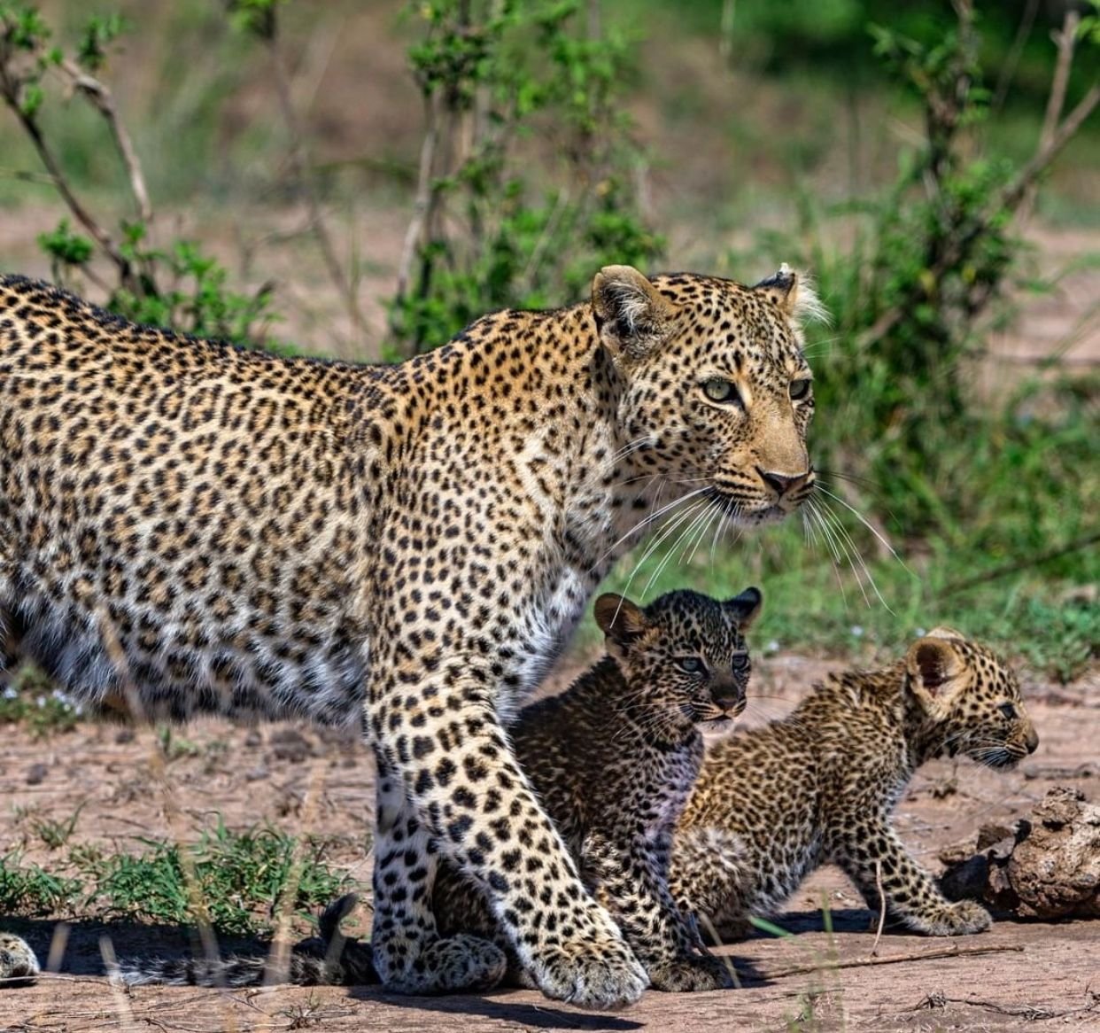 Самка леопарда с котятами