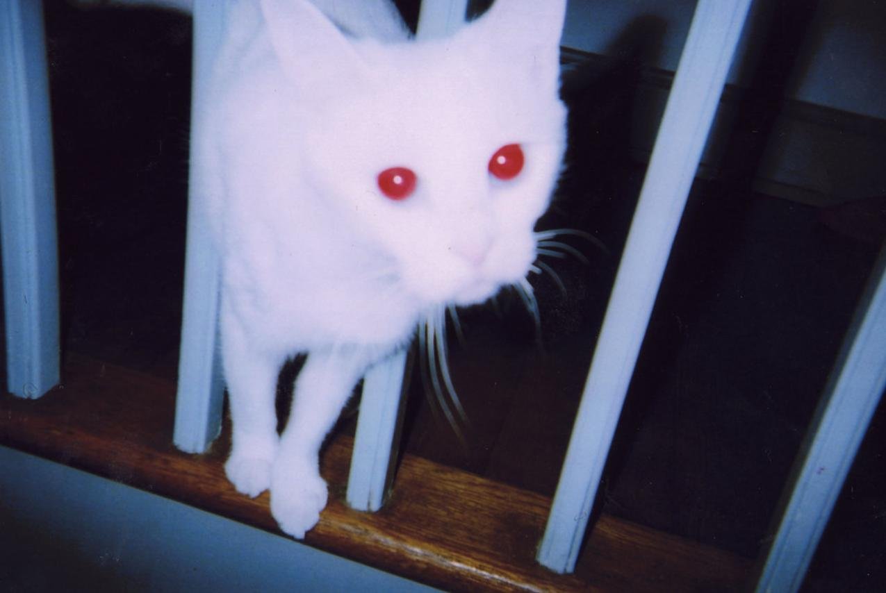 Кот альбинос с красными глазами