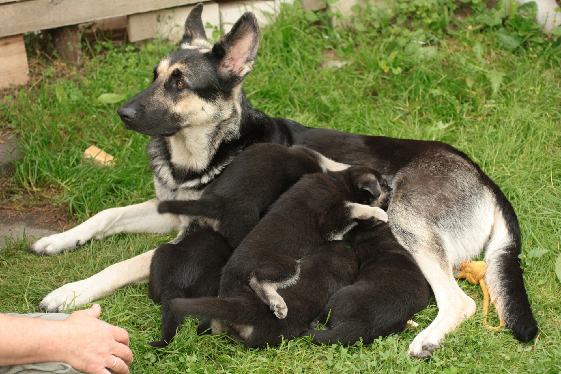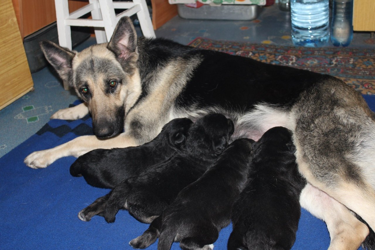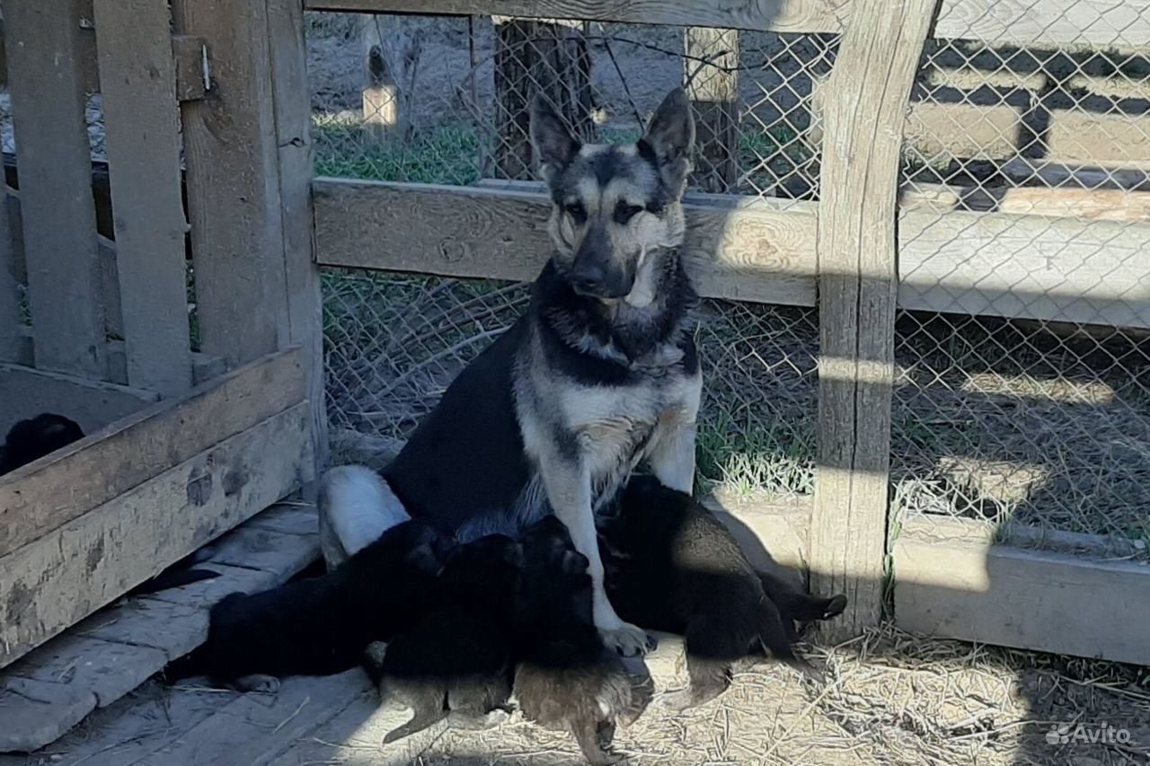 Восточно-европейская овчарка мама с щенками