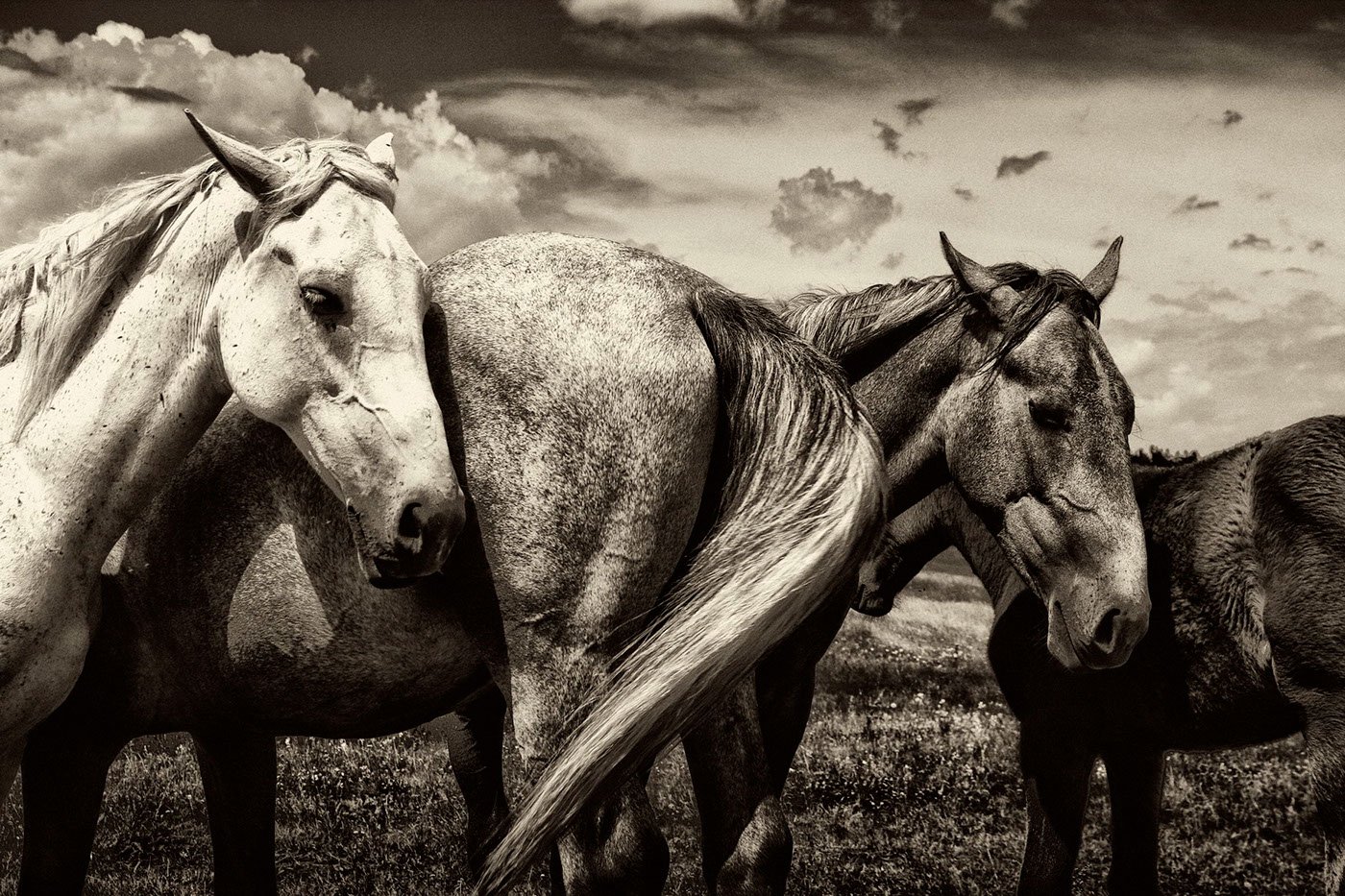 Лошади в черно белом цвете