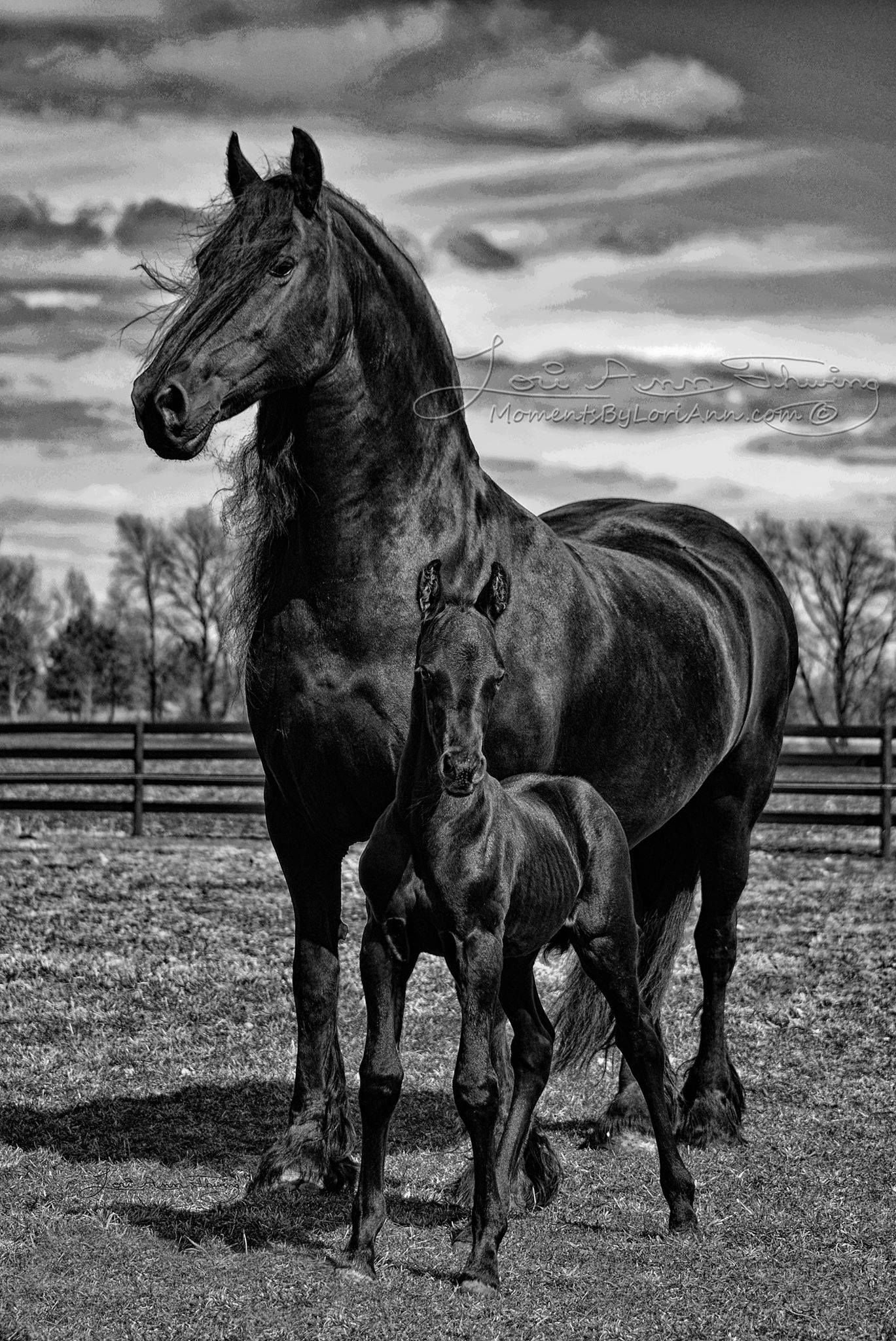 Две лошади черная и белая