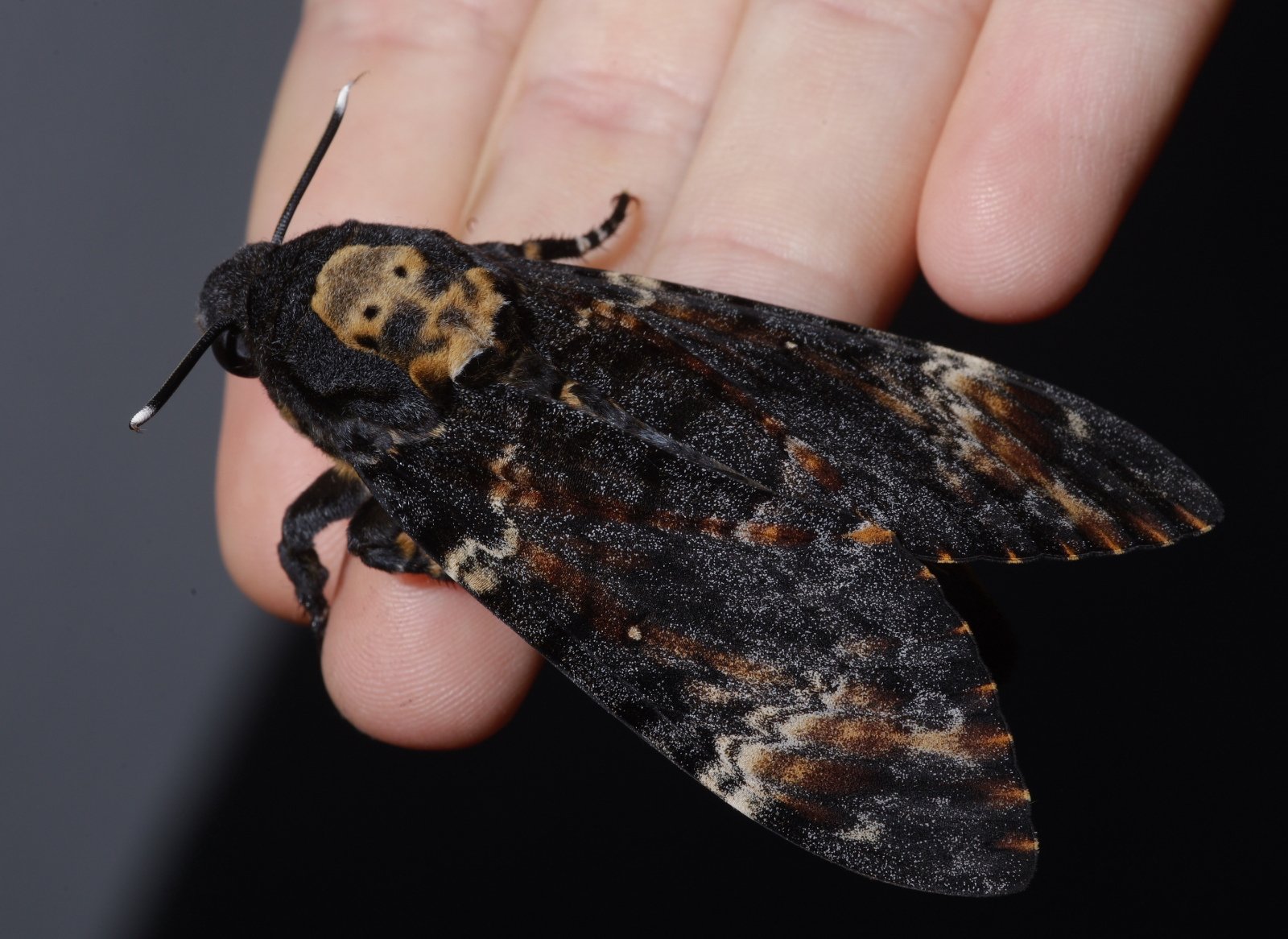 Бражник мертвая голова на руке