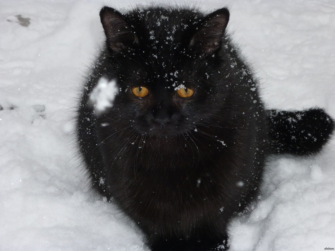 Черный кот в снегу