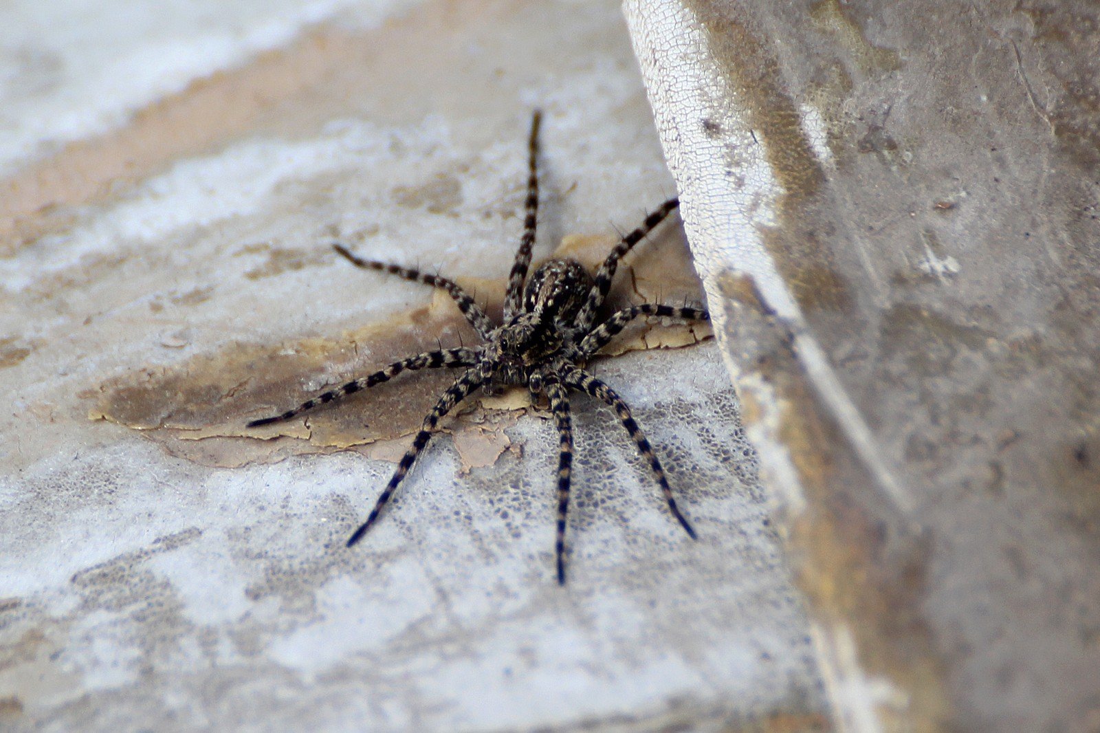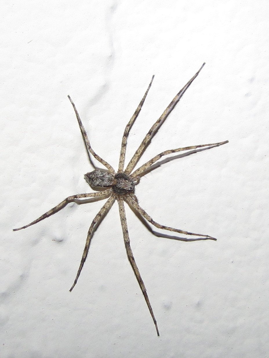 Серый паук с длинными лапами дома