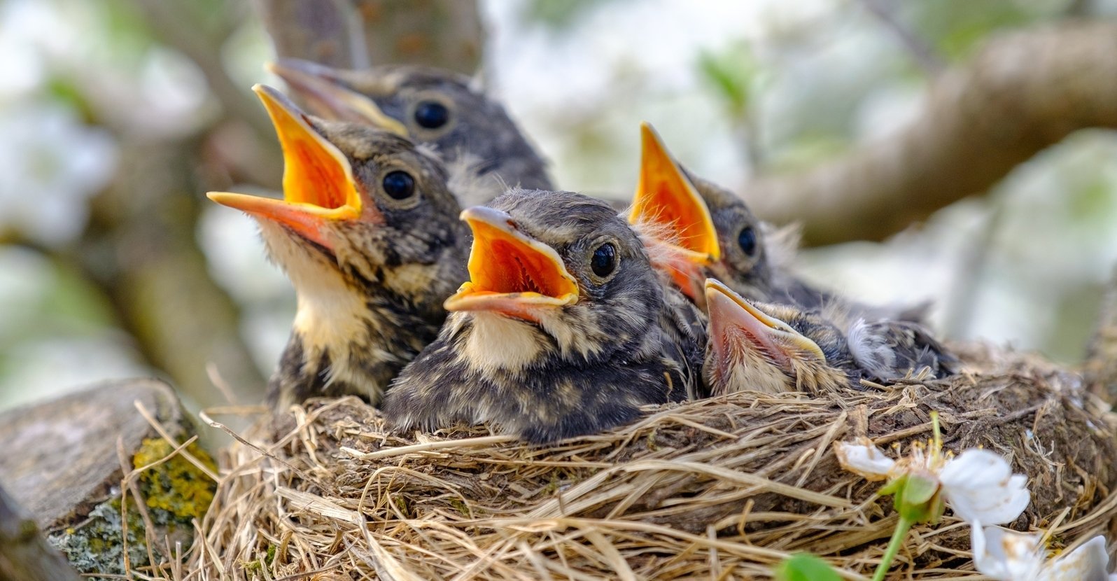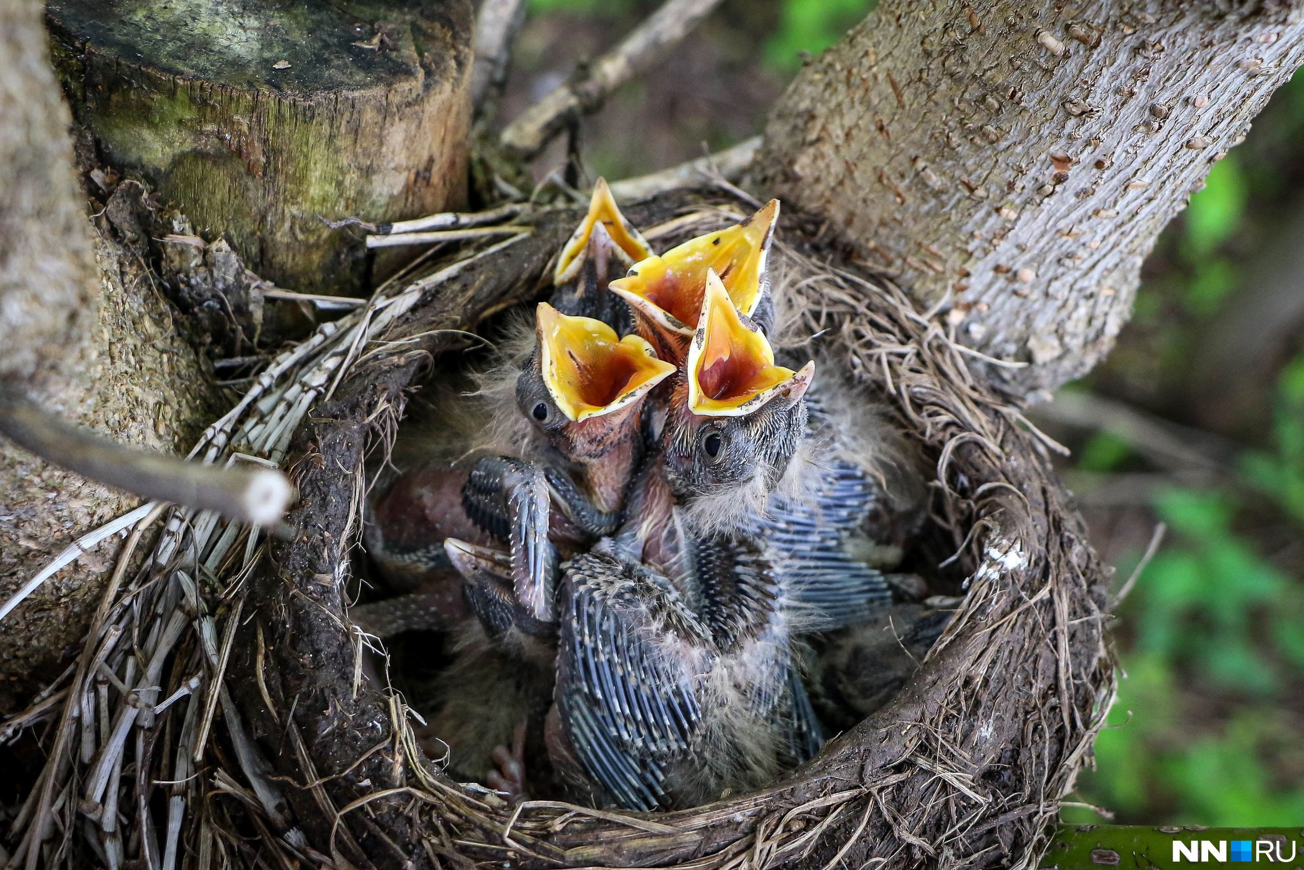 Голодные птенцы в гнезде