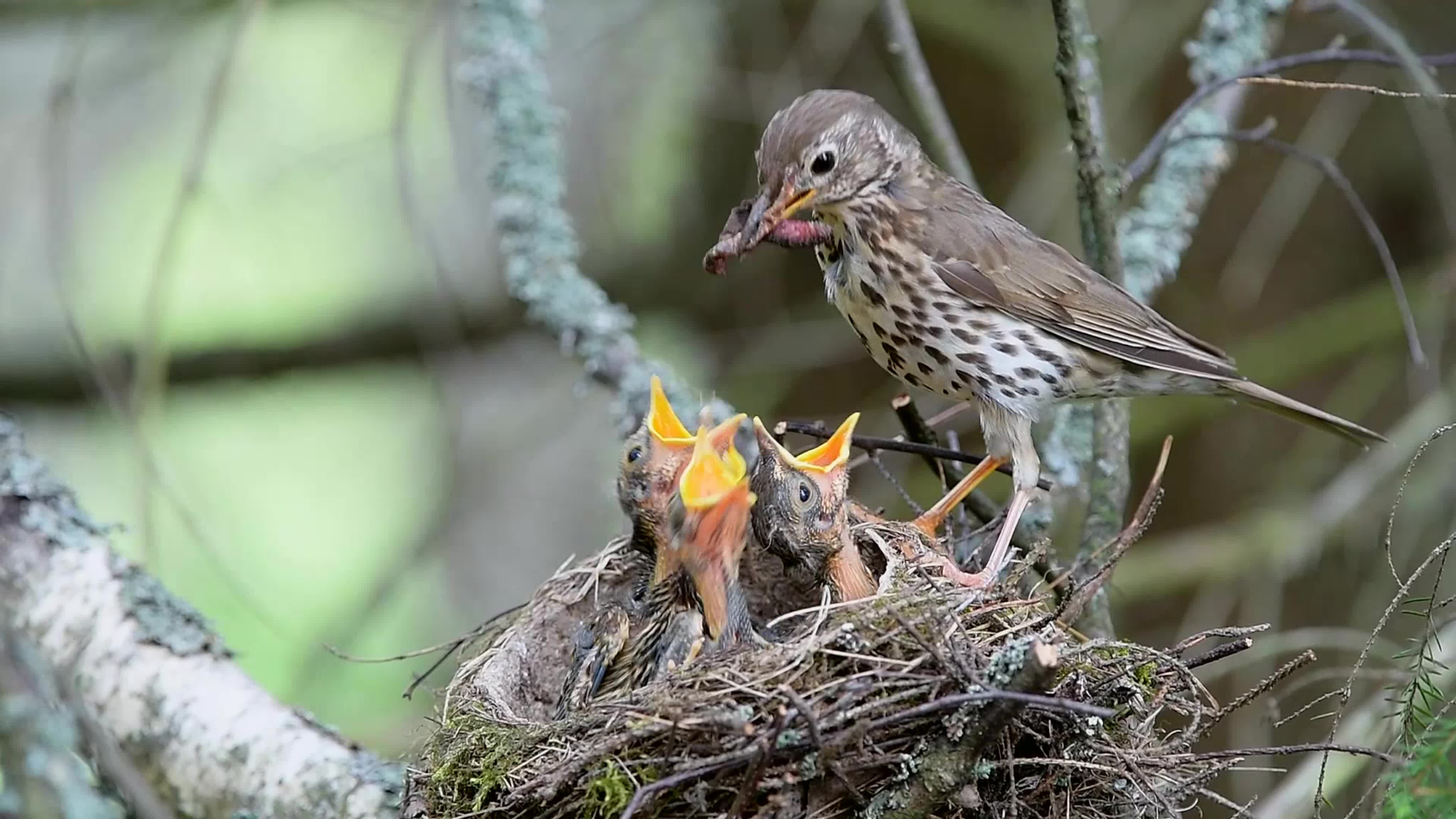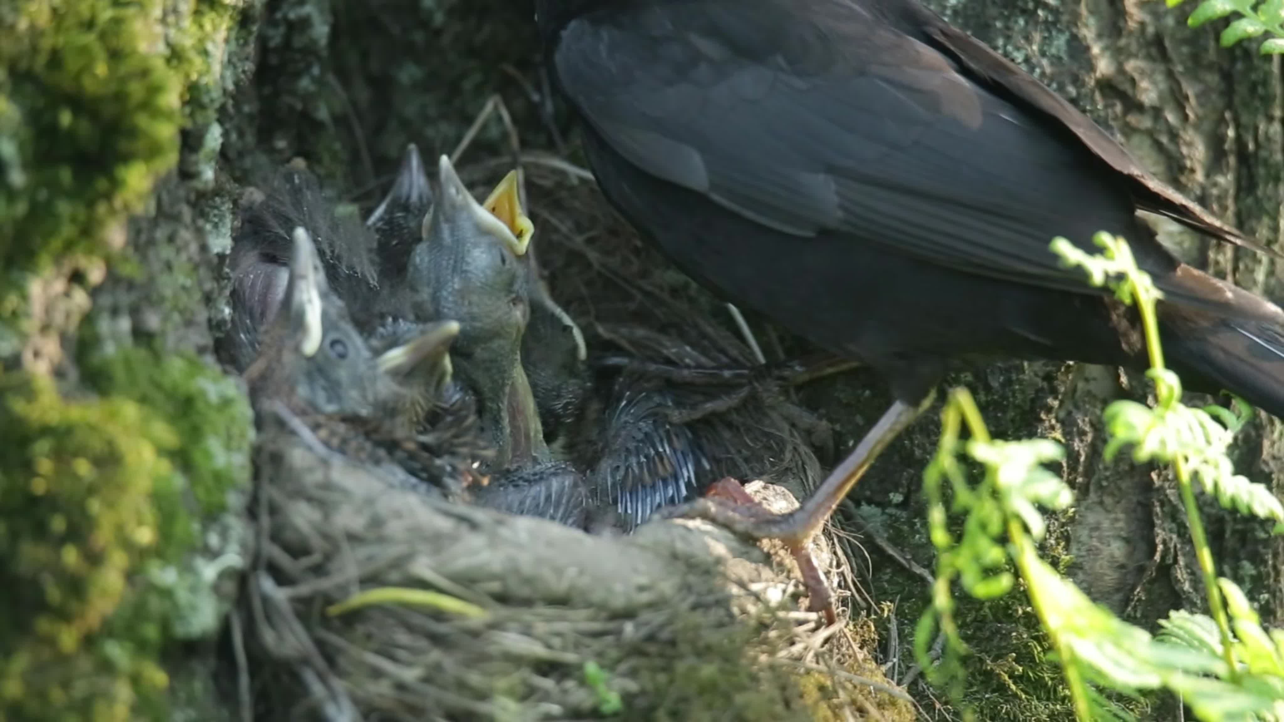 Как Дрозды кормят ночью детей