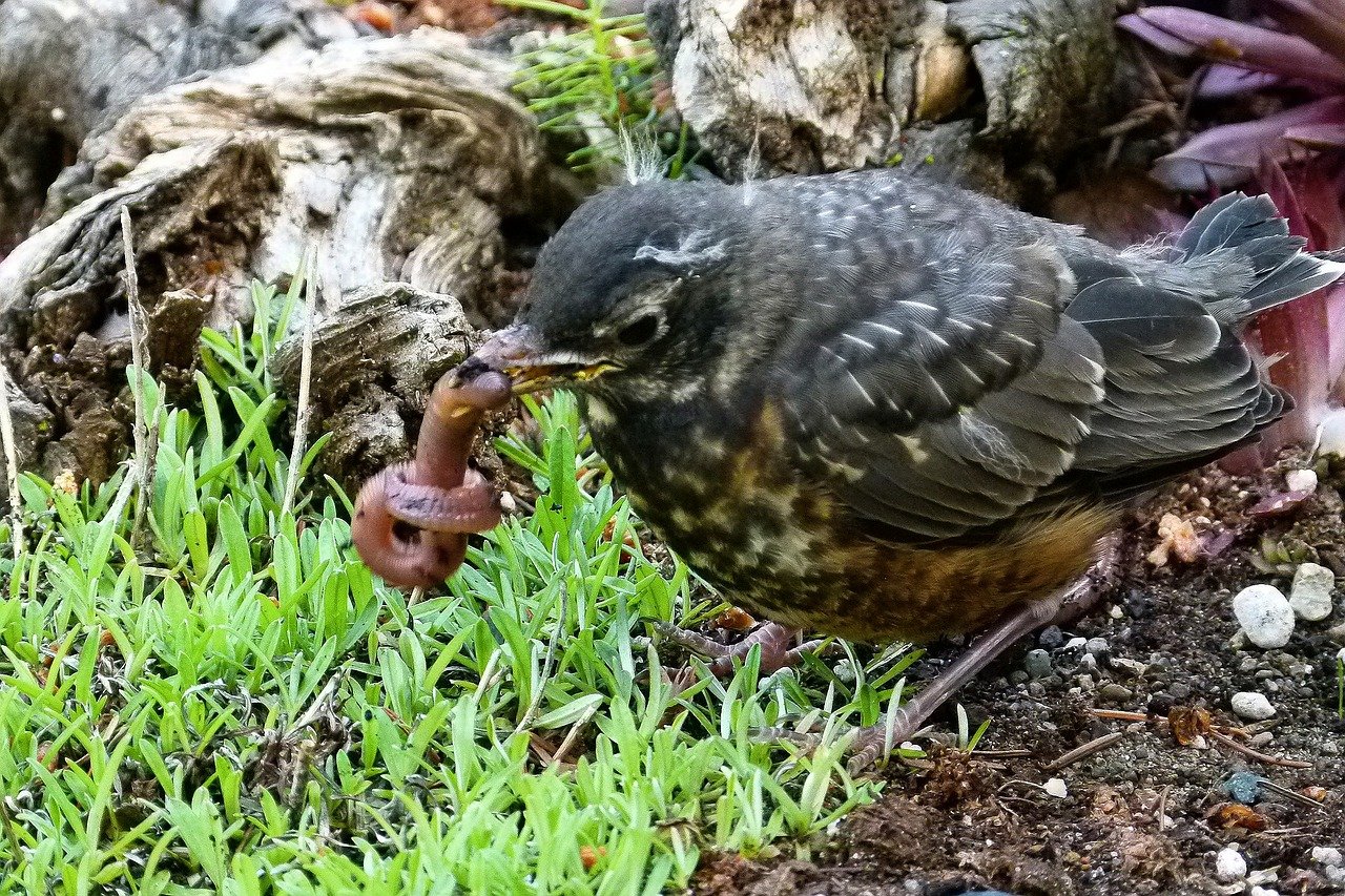 Птица с червяком в клюве