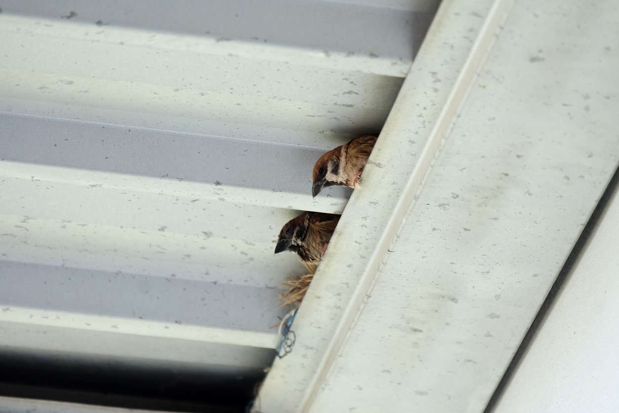 Гнездо воробья под крышей