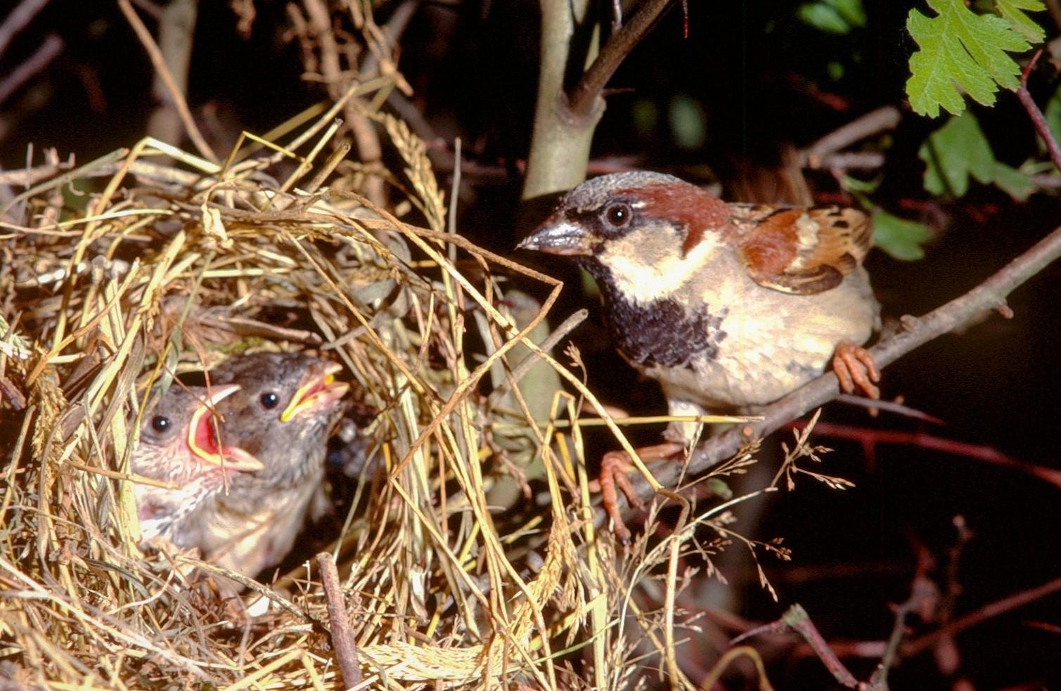 Птенцы воробья в гнезде