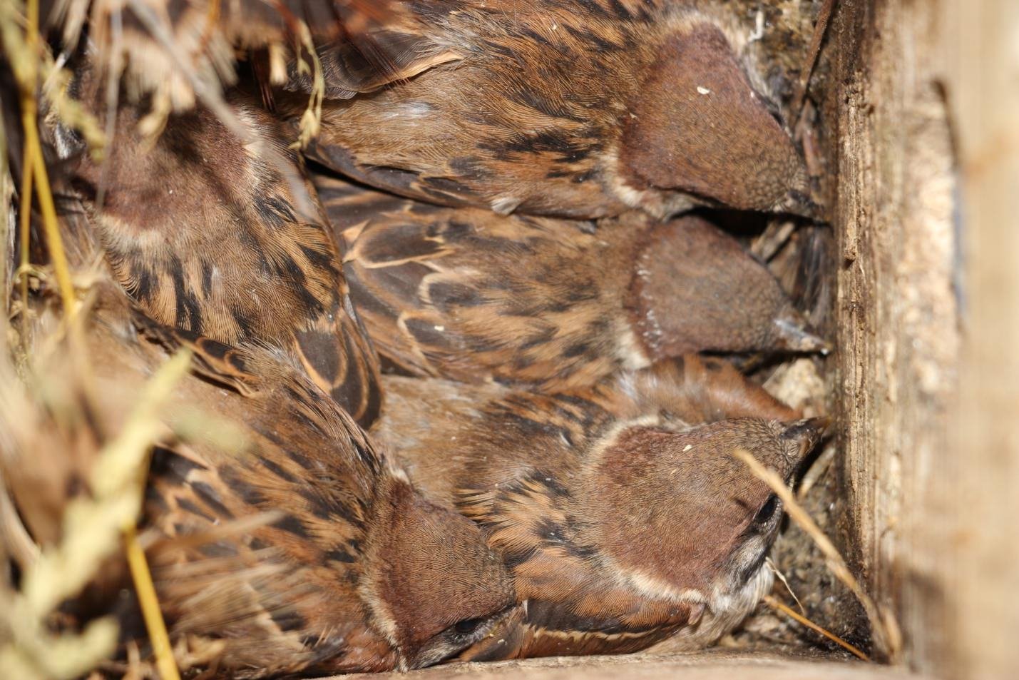 Птенцы воробьёв в гнезде