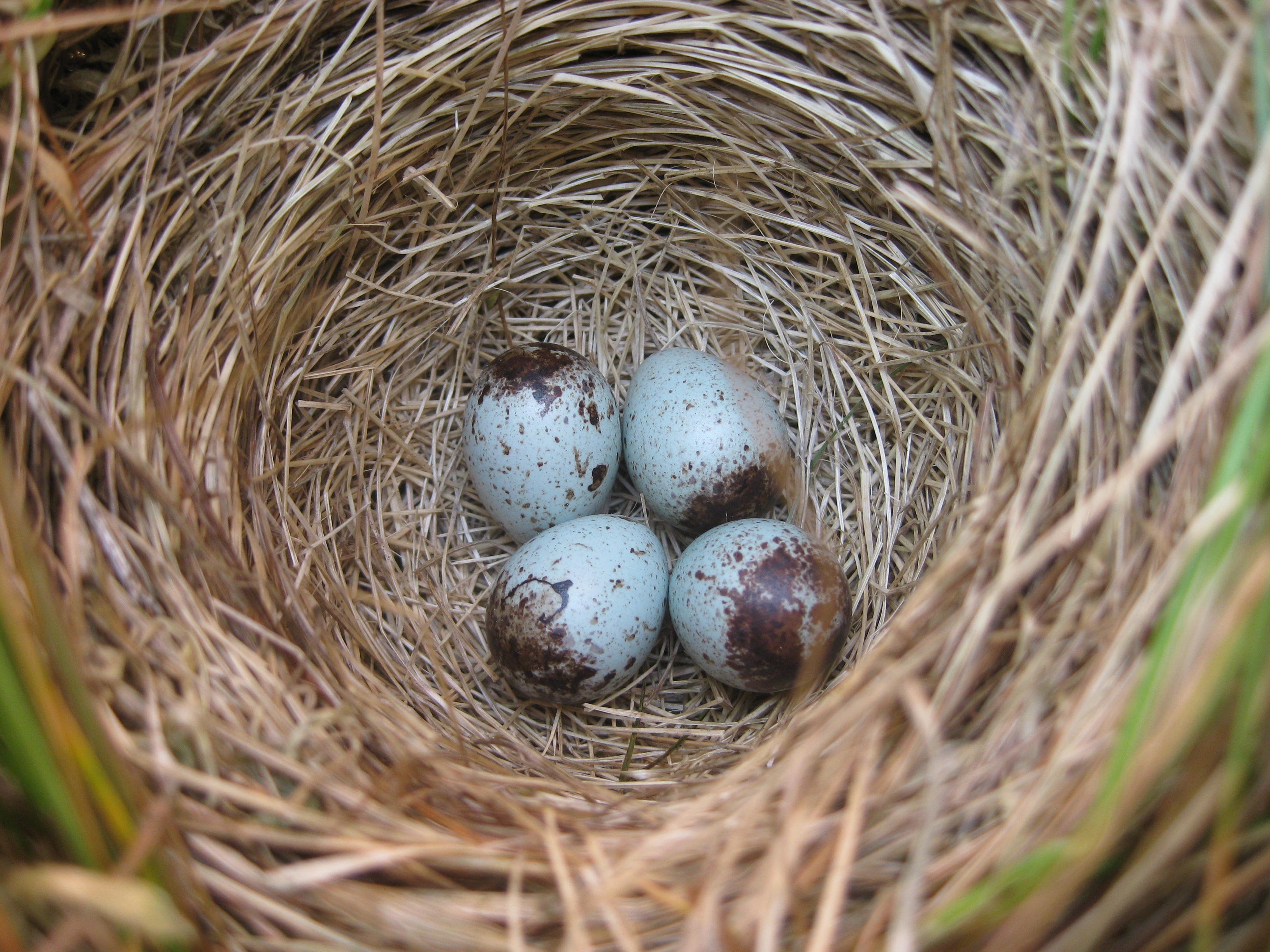 Гнездо дрозда рябинника яйца