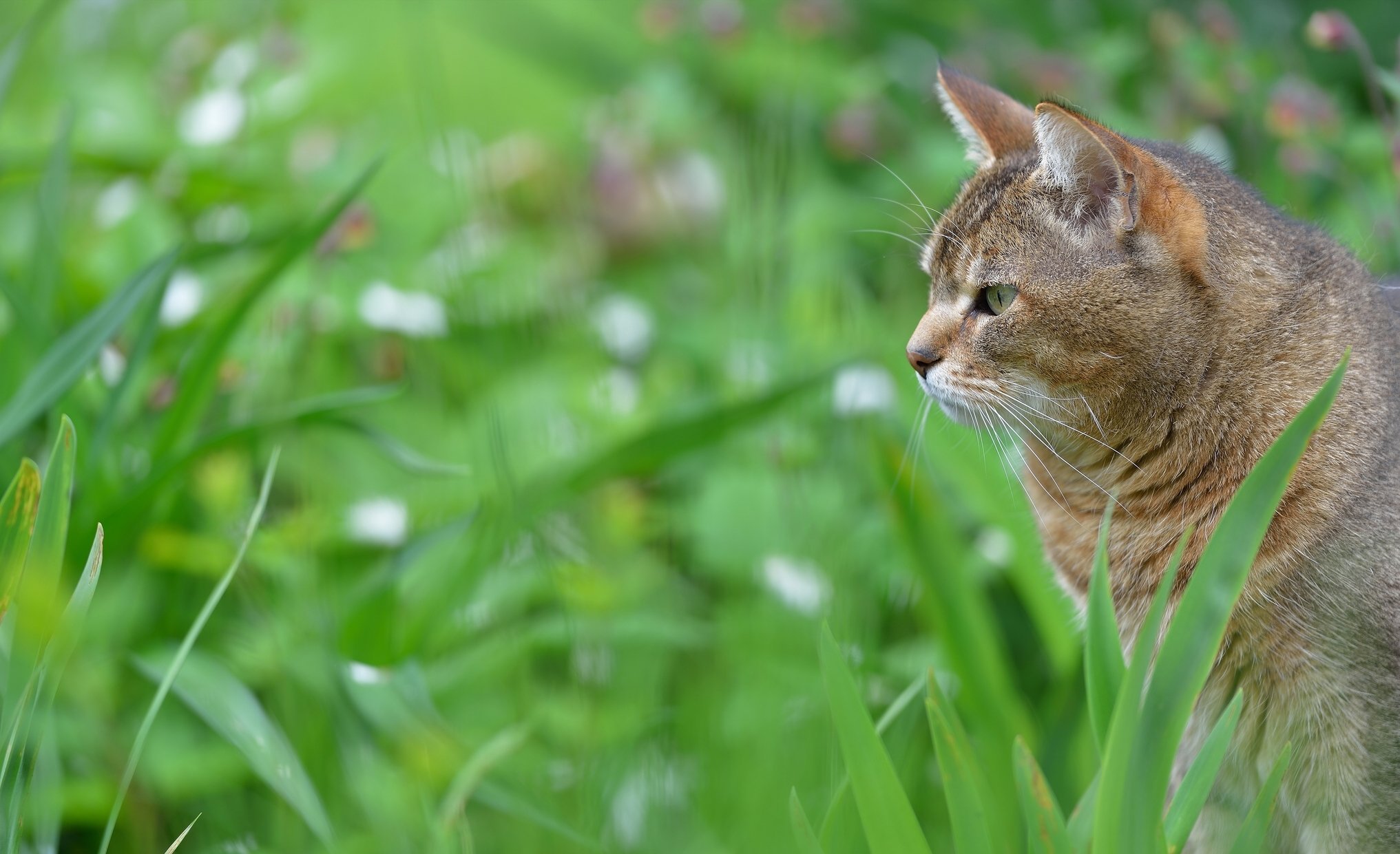Кошка сидит на траве