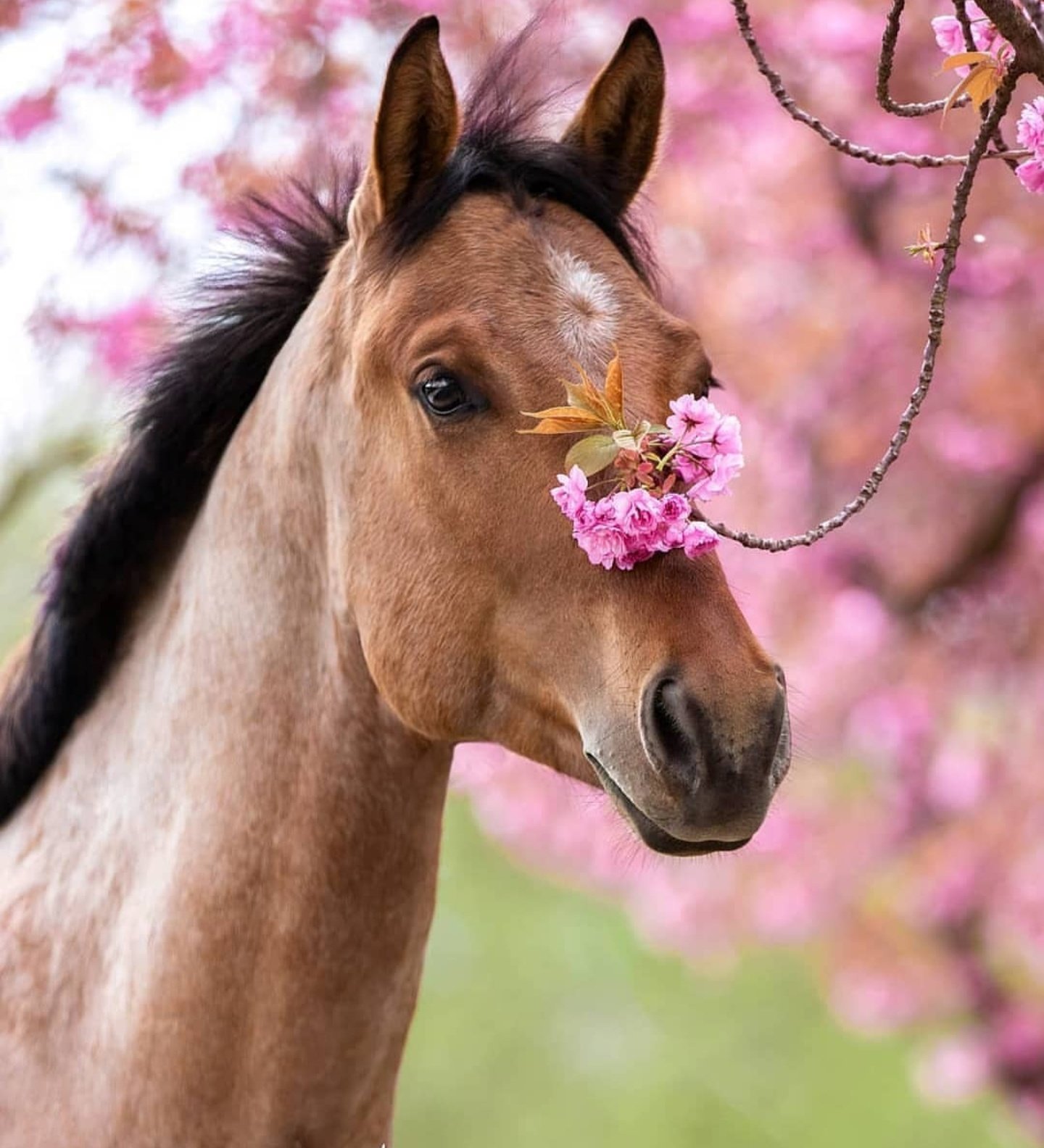 Лошадь с цветком в зубах