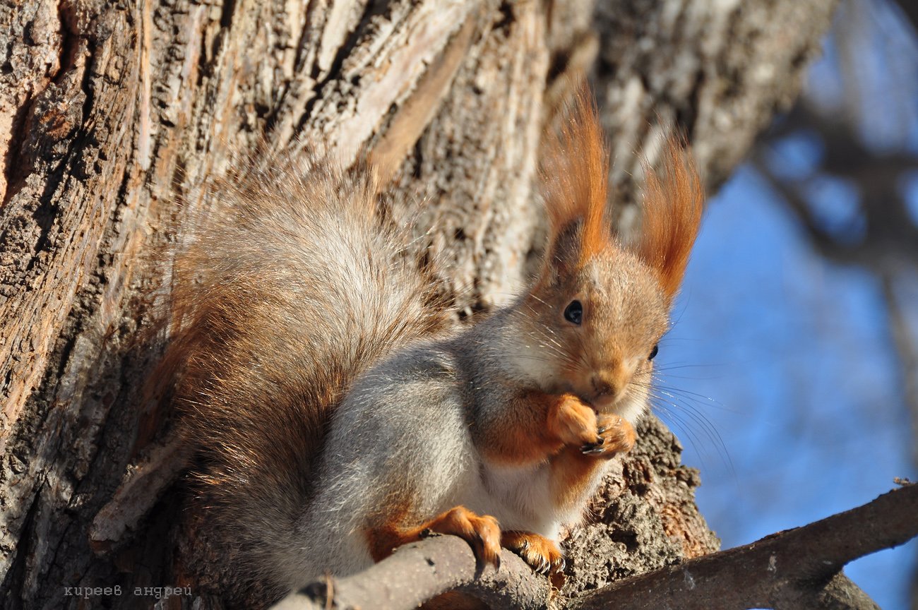 Белка с рук ест орешки
