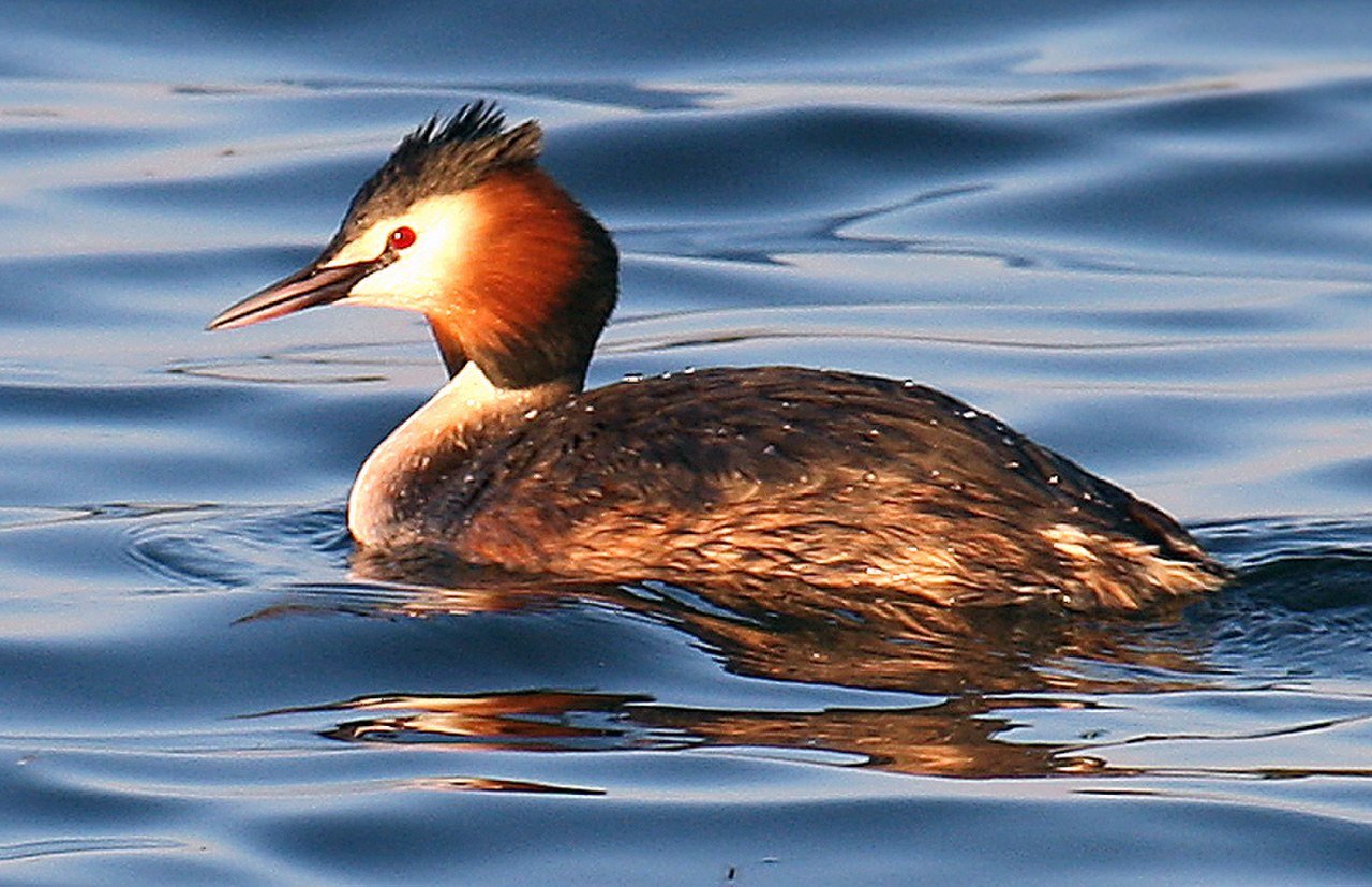 Большая хохлатая поганка птица